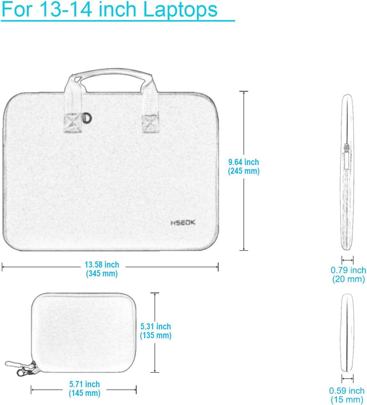 Size & Compatibility: Internal dimension is: 13.4 x 9.4 x 0.8 inches; the small case: 5.71 x 0.59 x 5.12 inch; compatible with MacBook Pro 14″ M4/M3/M2/M1 2025-2021 MacBooks Air/Pro 13″; Compatible with Surface Book 3/2/1 13.5; Compatible with Dell Latitude 14; Compatible with HP Elitebook 13.3/Spectre X360 13.3/Envy 13/Stream 13/Stream 14/Pavilion 14/ProBook 14/Chromebook 14; Compatible with Lenovo IdeaPad/ThinkPad 14″ and more 13 13.3 13.5 13.6 14 noteboos