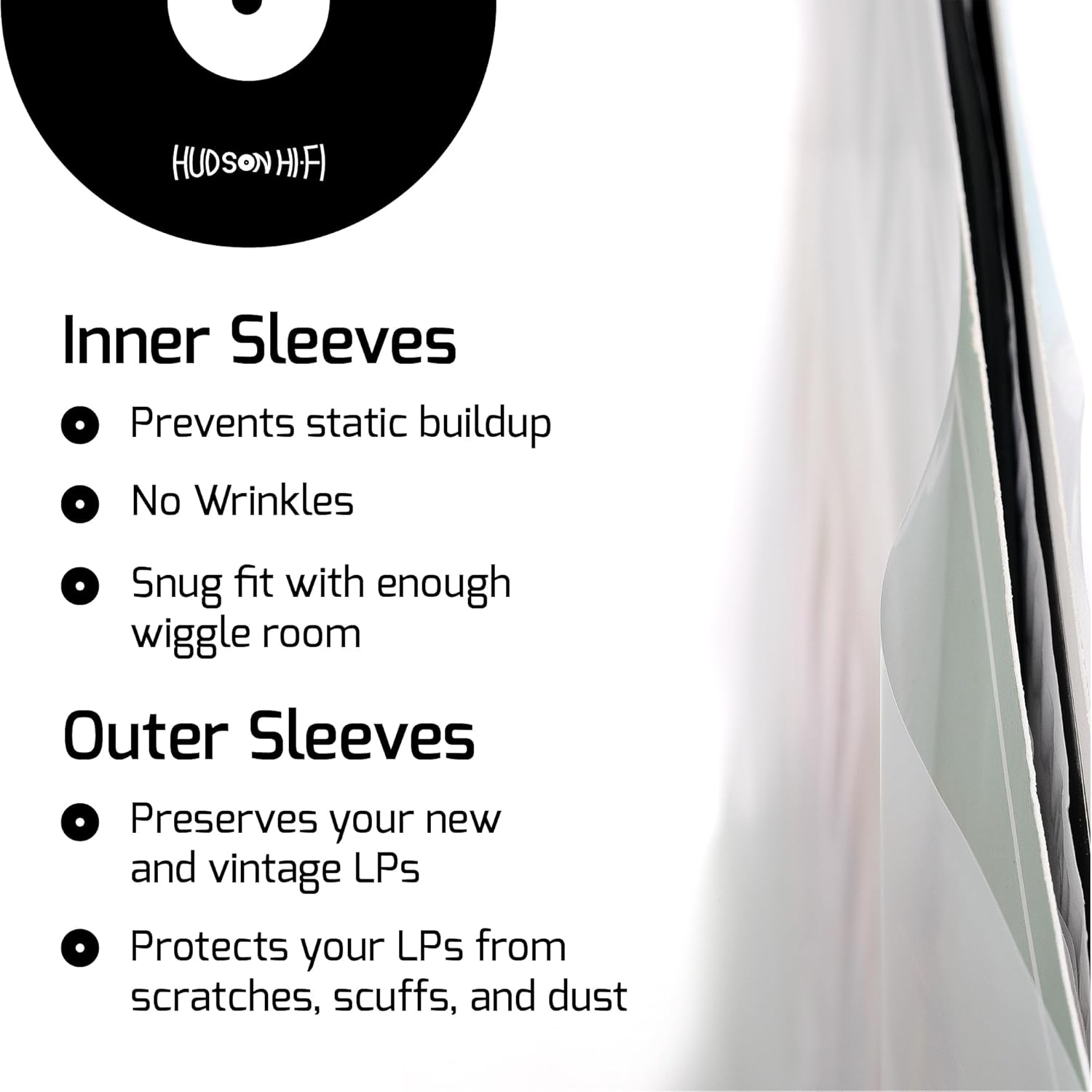 THE ULTIMATE ALBUM SLEEVES FOR YOUR PRECIOUS VINYL RECORDS ARE HERE! Now you can finally protect your valuable LPs from scratches, scuffs and dust with the Hudson Hi-Fi exclusive vinyl record Inner & Outer Sleeves – Archival Quality Bundle! Keep your vintage record collection safe from dirt or tears effortlessly!