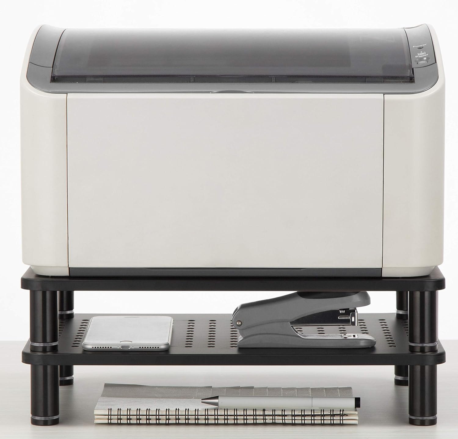 This metal riser can hold up to 44 lbs, and works great as display for computer monitors and/or small television sets. It’s tall enough on its own that the space beneath can be used as storage. Two stands can be stacked one on top of the other for efficient use of space. Put an All In One printer copier scanner on top, and reams of paper and replacement cartridges beneath.