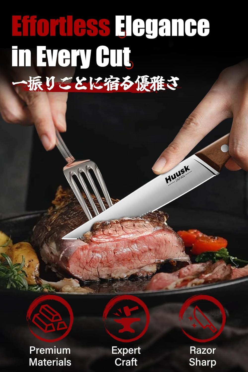 Crafted for Daily Use: Made from high-carbon stainless steel with 55 HRC hardness, these knives balance strength and sharpness for reliable performance at every meal, making steak nights and family dinners more enjoyable and efficient