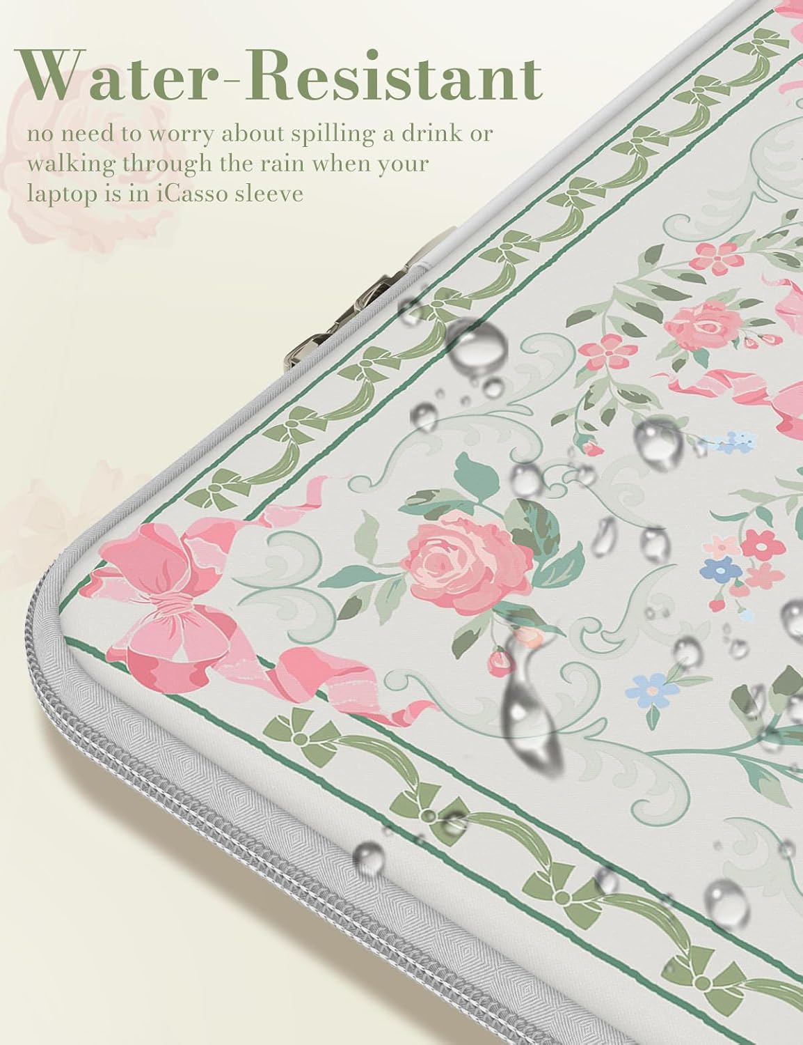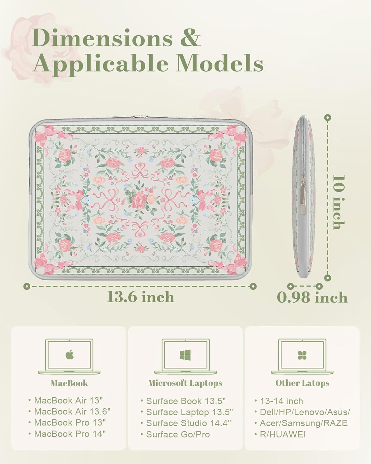 iCasso Laptop Sleeve 13 inch for MacBook Air 13-13.6 inch,Cute Laptop case for MacBook Pro 13 inch 14 inch, Slim Protective Travel Carrying Case Sleeve for 14 inch Chromebook, HP, Retro Bow Green