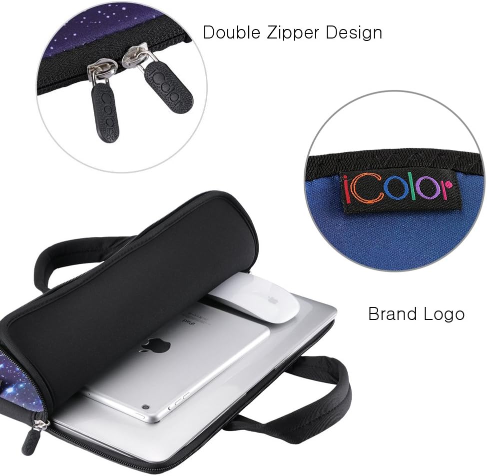 iColor 15 inch Laptop Carrying Bag Sleeve handle case,Made of 5mm Soft Neoprene Fabric,Protect Your Laptop from Scratching, Shock and DustSame Print on Front and Back,Double Zipper Design Glides Smoothly and Allows Convenient Access to Your Laptop ComputerSlim and Lightweight,Waterproof,Super Soft Handle,Easy to CarryMashine Washable,Can be Repeated Cleaning, Easy to Dry. Never Fade