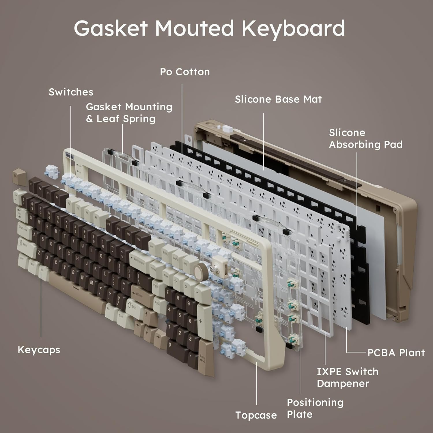 Gasket Mounted Design – With leaf spring and gasket structures, B98 creamy keyboard provides a smoother, more consistent typing feel than traditional tray mounting. Multi-layer foam and PCB coating reduce noise, offering crisp and clear typing sound. Ideal for gamers and typists who value performance and comfort
