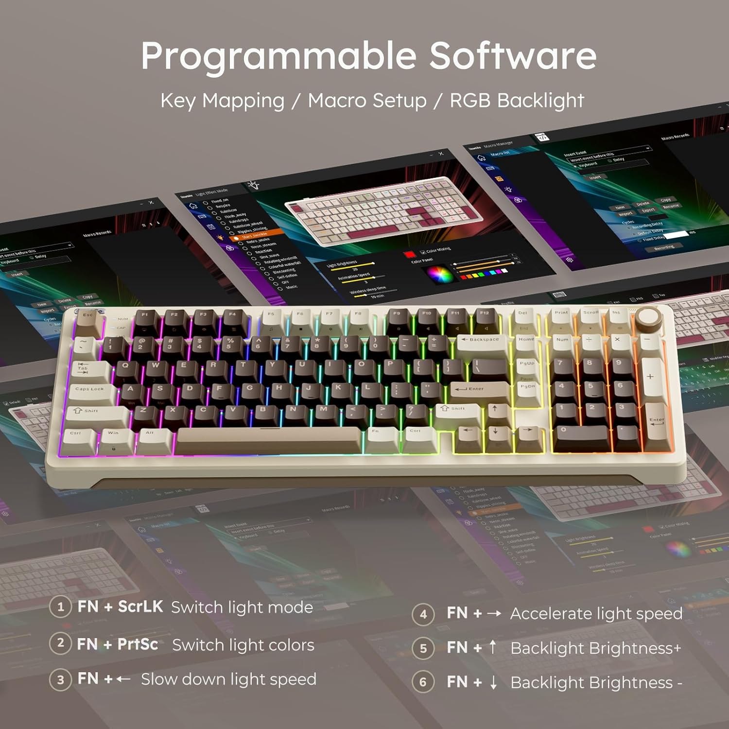Low Latency & Long Lasting Performance – The custom keyboard offers low-latency 2.4G wireless and Bluetooth connectivity, allowing up to 3 devices to connect simultaneously in BT mode. Its 3150mAh rechargeable battery provides up to 260 hours of use with RGB off, perfect for extended gaming or work sessions