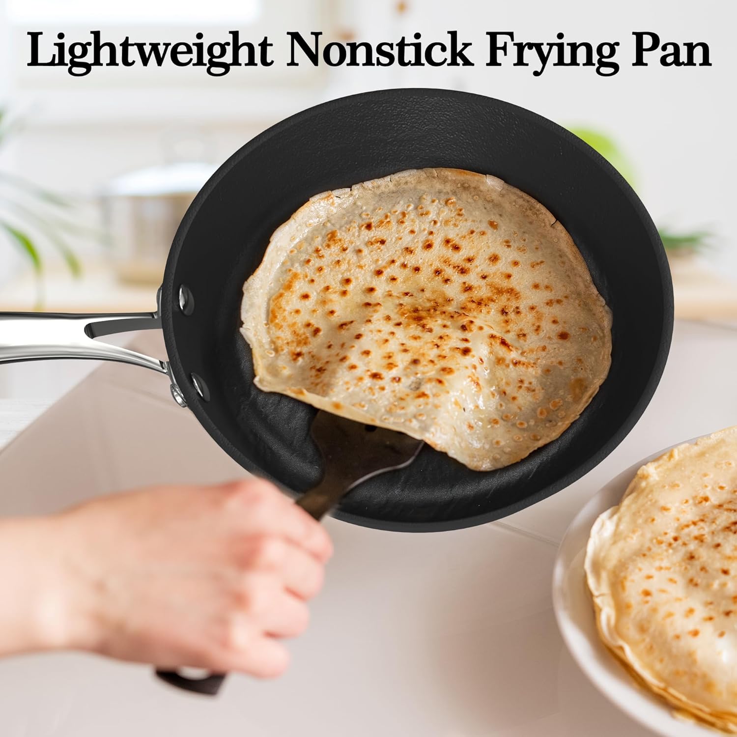 Healthy, Low-Oil Stone Nonstick Coating: Our non stick frying pans feature a meticulously designed three-layer stone-textured coating for exceptional durability and resistance to peeling, ensuring safe and worry-free cooking. Its outstanding nonstick performance allows you to prepare delicious meals with minimal oil or butter