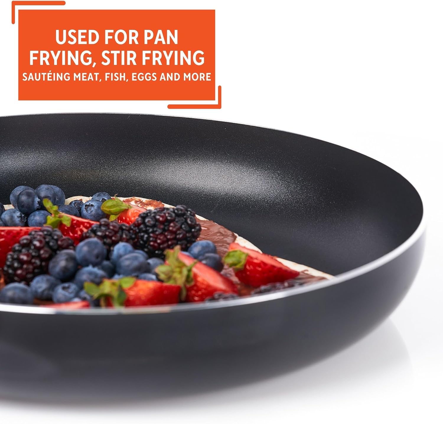 VERSATILE FEATURES: Featuring a cool touch handle for comfortable and safe operation, this frypan excels in pan frying, stir-frying, and sautéing, reducing the need for excess oil and simplifying cleanup