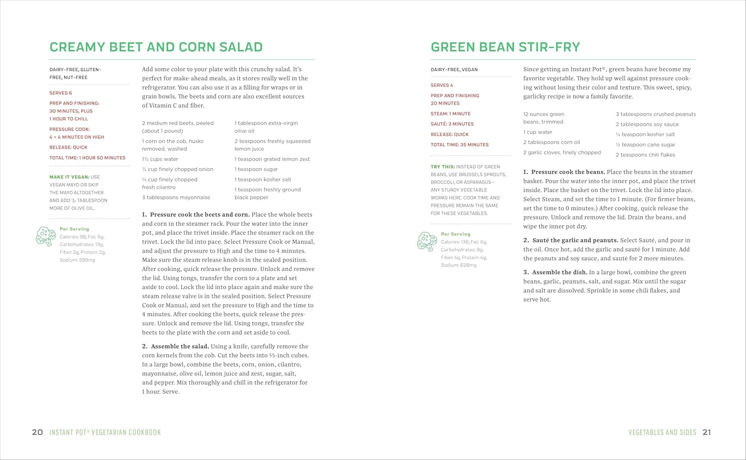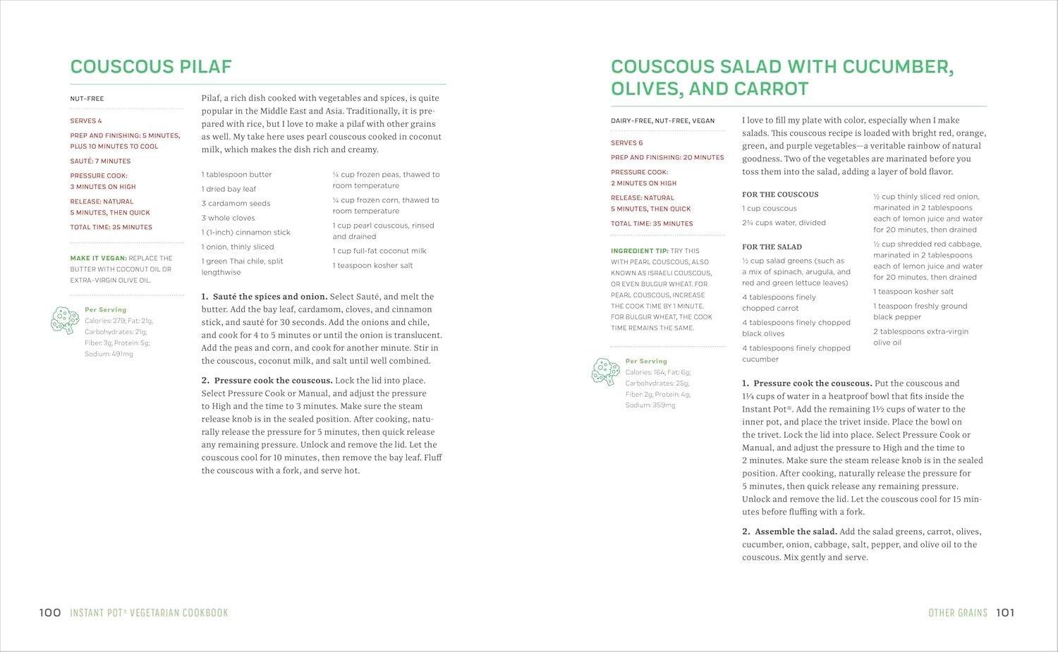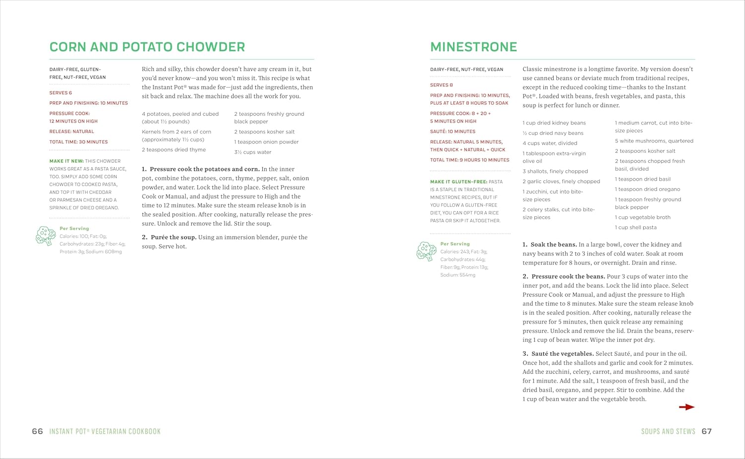 75+ VEGETARIAN DISHES―Cook-up Enchilada Casserole, Chana Masala, Strawberry-Chocolate Cake, and a variety of other healthy and satisfying vegetarian dishes with this Instant Pot cookbook.STEP-BY-STEP GUIDANCE―This Instant Pot cookbook has recipes and cooking charts that feature timing, pressure level, and how to best release the pressure.TIPS TO SHAKE IT UP―Get advice for turning recipes vegan, exciting ways to use your leftovers, ideas for transforming recipes, and more.