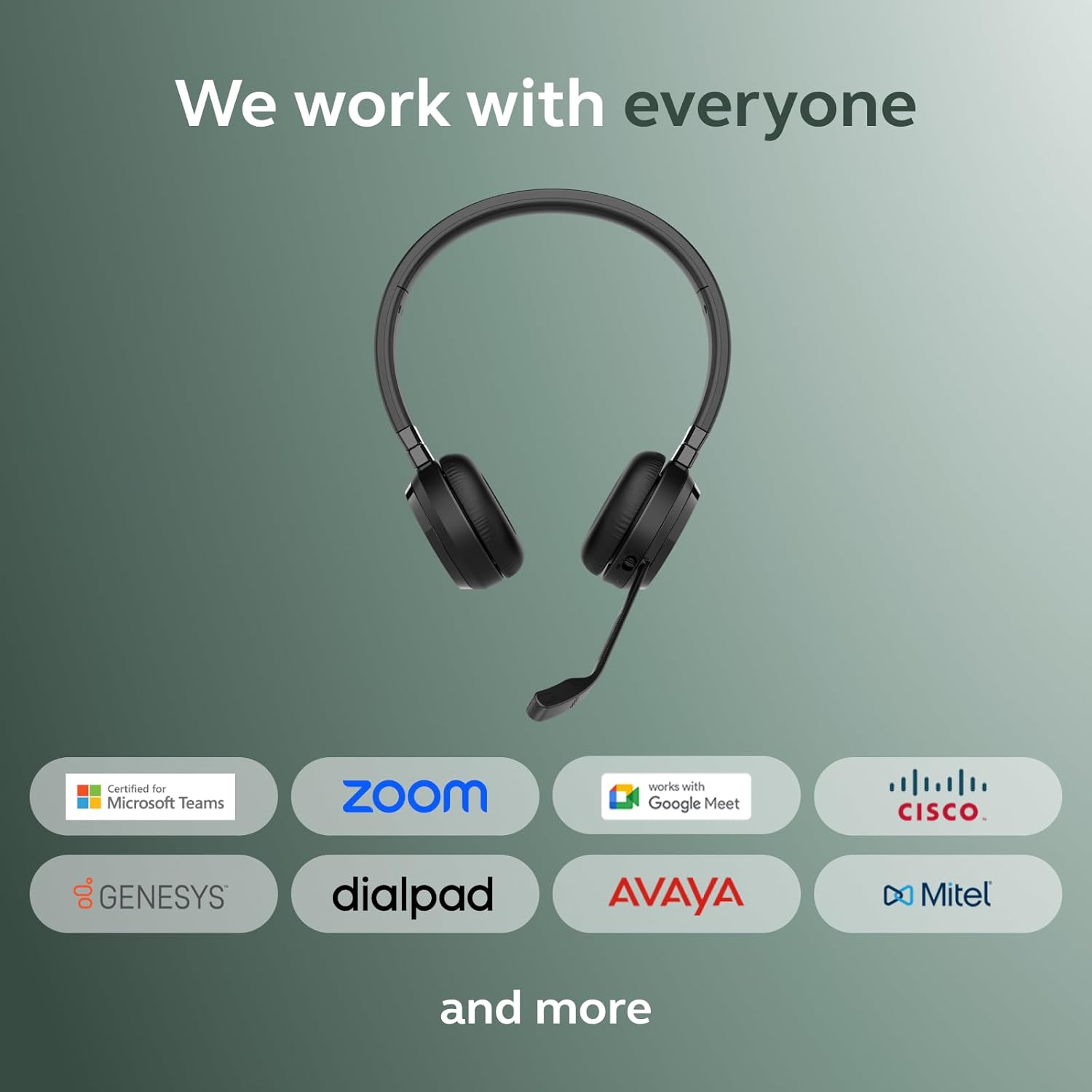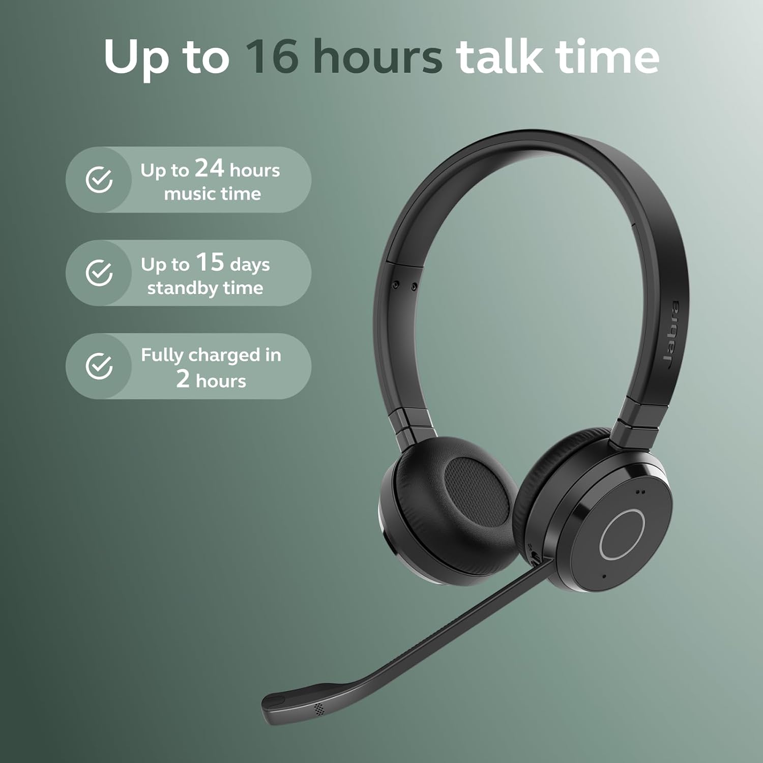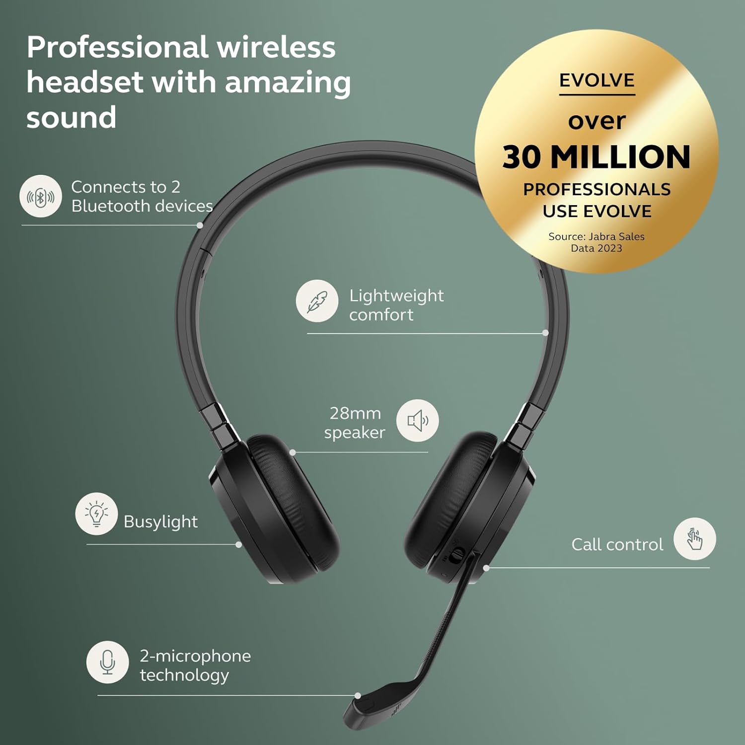 Jabra Evolve 65 TE (Third Edition) Wireless Dual-Ear Headphones – Noise-Canceling Mic, 16 hrs Battery Life, Dual Connectivity, MS Teams Certified, Supports Other Platforms, Black
