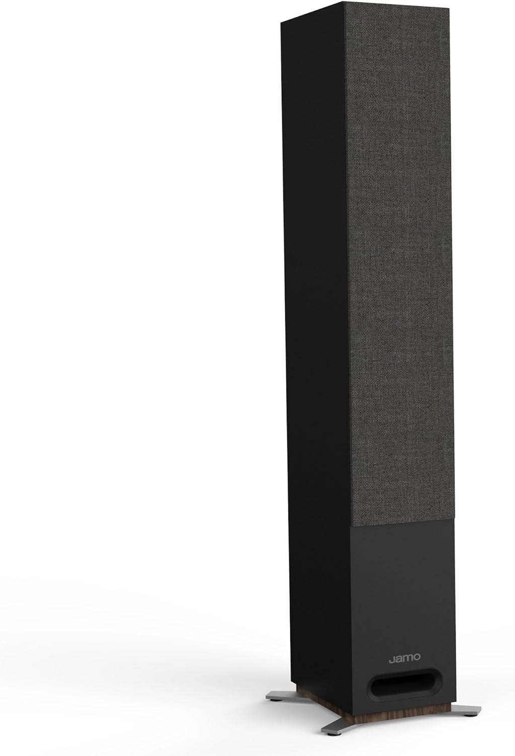 The S 809 is our Jamo flagship Dolby Atmos tower speaker. Three impressive 127mm (5″) aluminized polyfiber woofers and a 25mm (1″) soft dome tweeter deliver an amazing acoustic performance. Each speaker includes a patent-pending connection points atop the cabinet for seamless integration of the S 8 ATM topper to deliver the overhead effect of Dolby Atmos. Premium performance The 1″ Soft dome tweeter provides smooth, refined high frequencies, with three 5″ Aluminized polyfiber woofers for balanced, cinematic low end. The integrated waveguide focuses the high frequency sound for dynamic, true-to-life reproduction, while the front-firing tube port allows for better low frequency extension with placement flexibility. Seamless Dolby Atmos integration elegant metal fasteners atop the cabinet provide a chic, modern industrial look, but also serve as a connection point for the S 8 ATM Dolby Atmos Elevation speaker. This patent-pending design allows for all of the wire connections on the back of the floorstander, avoiding unsightly and messy speaker wire going all the way up to the Atmos module – For cinematic, completely immersive Dolby Atmos sound while preserving the beautiful aesthetic of the Jamo Studio 8 Series. More bass + less space Front firing tube port improves low frequency extension while maximizing placement options. Specifications Frequency response 37Hz – 26Khz (+/- 3dB) sensitivity 90dB (2.83V @ 1M) power handling 120W/ 240W impedance 8 Ohm high frequency driver 25mm (1″) soft dome tweeter low frequency driver 3 x 127mm (5″) POLYFIBER woofers speaker enclosure MDF enclosure Type bass reflex via front firing slot port inputs single binding posts (main/ height) Dimensions 1042mm x 191mm x 252mm 8.70″ X 6.5″ X 10.25″.