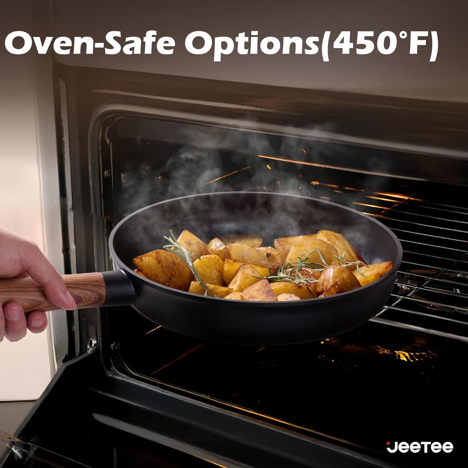 [Even Heating] The advantagment is JEETEE Oil Polymerization Design. JEETEE unique oil gathering pattern design at the bottom of the pot heats up quickly and distributes heat uniformly, eliminating hot spots. Whether simmering or searing, retaining in nutrients and flavor for perfect results every time.