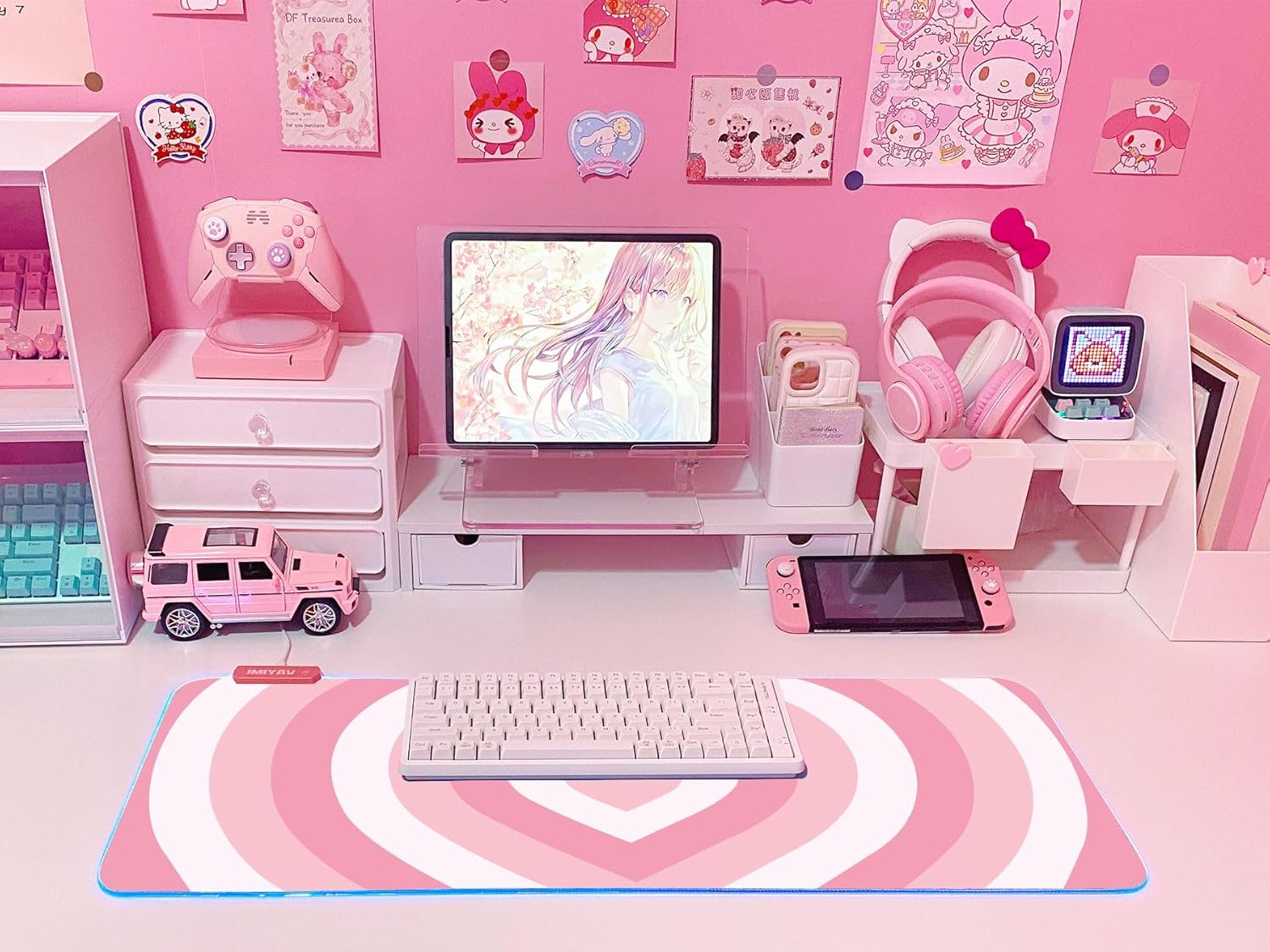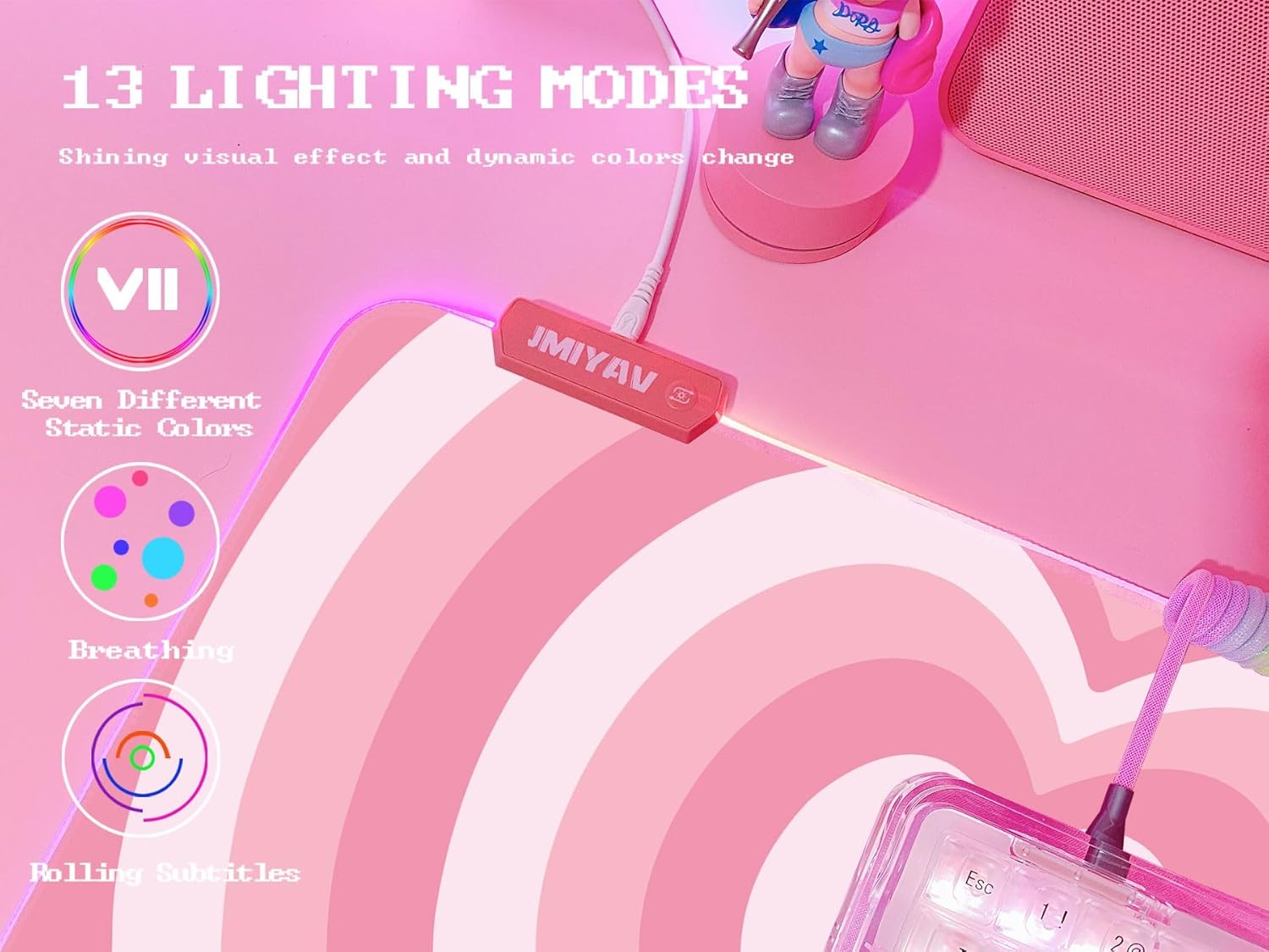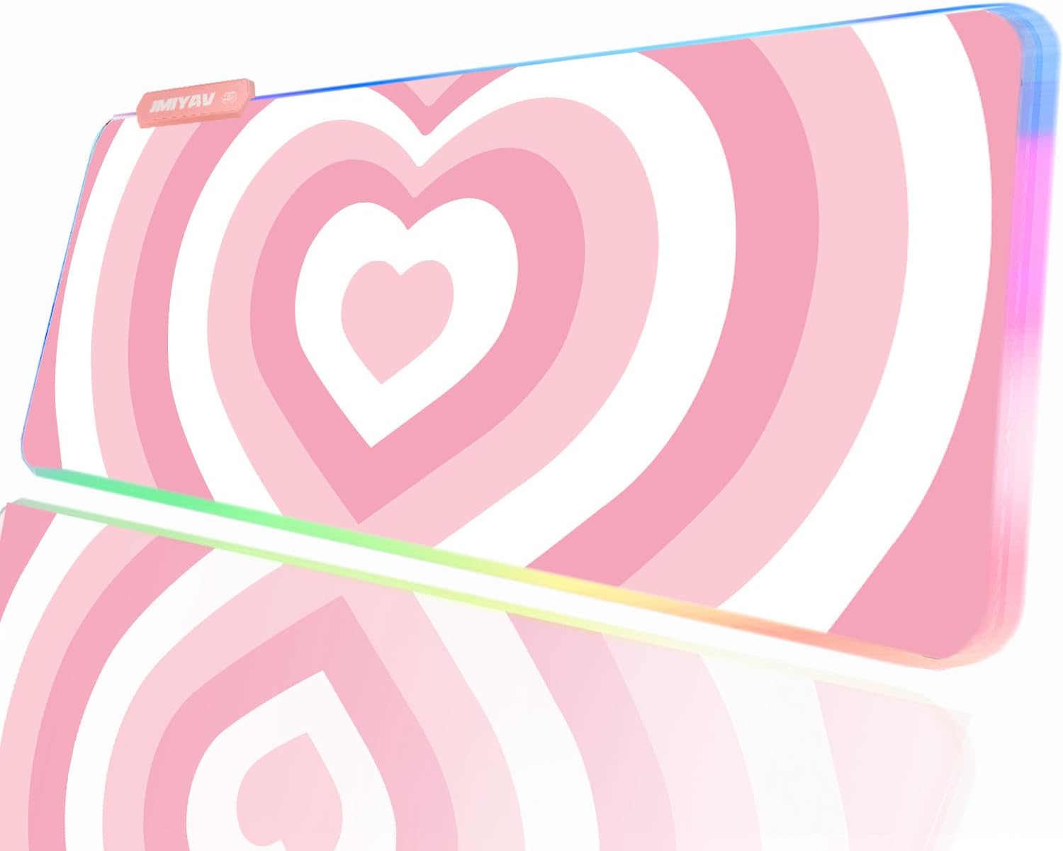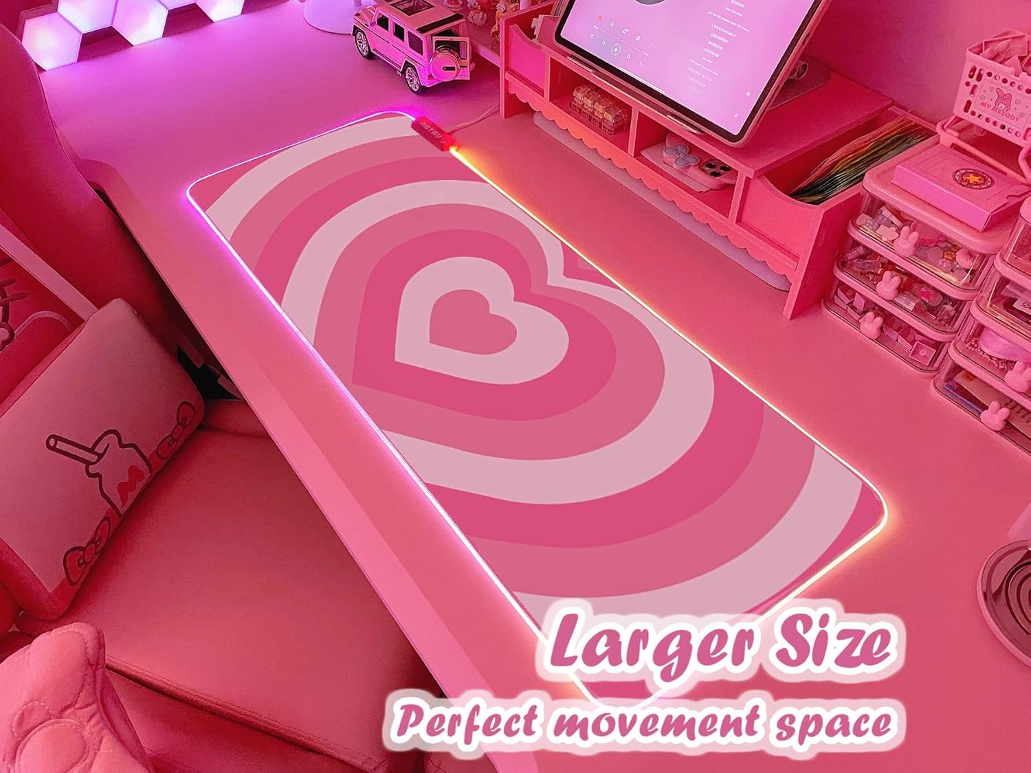 JMIYAV Pink Love Heart RGB Gaming Mouse Pad 31.5×12 Inch PC XL Large Extended Glowing Led Light Up Cool Mouse pad Desk Pad Non-Slip Rubber Computer Mouse Pad Cute Mousepad Mat 31.5×12 Inch