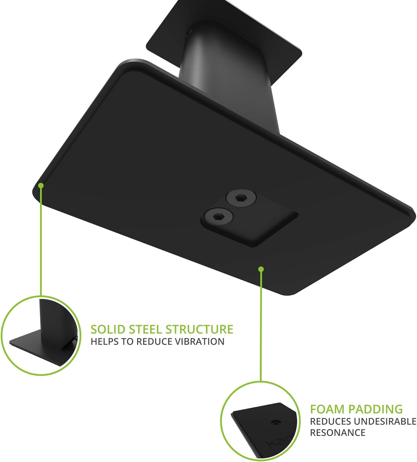 IMPROVED CLARITY – Surface vibrations caused by your speakers can result in muddy sound. SP9 desktop speaker stands prevent this by utilizing heavy steel and closed cell foam padding to absorb as much resonance as possible.