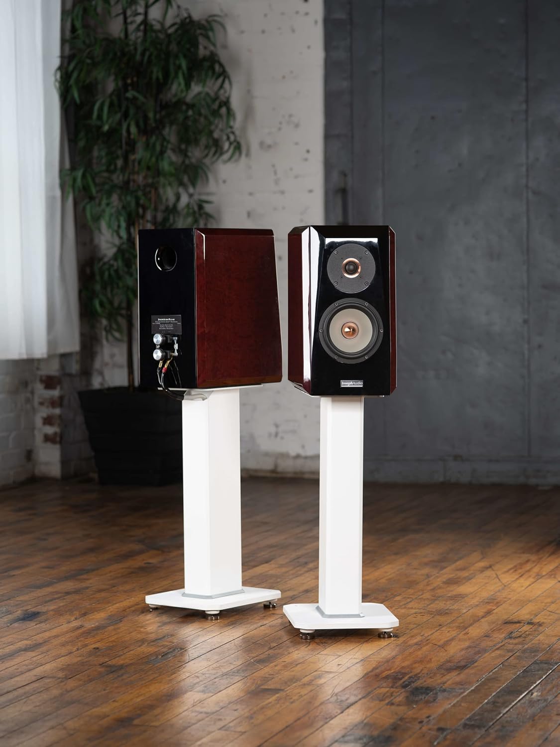 ISOLATING WITH LOW RESONANCE – Bespoke isolation system and hard floor discs with silicone pads help to further isolate the speakers and stands from the floor. A fillable column with included bags for substrate reduces potential resonance.