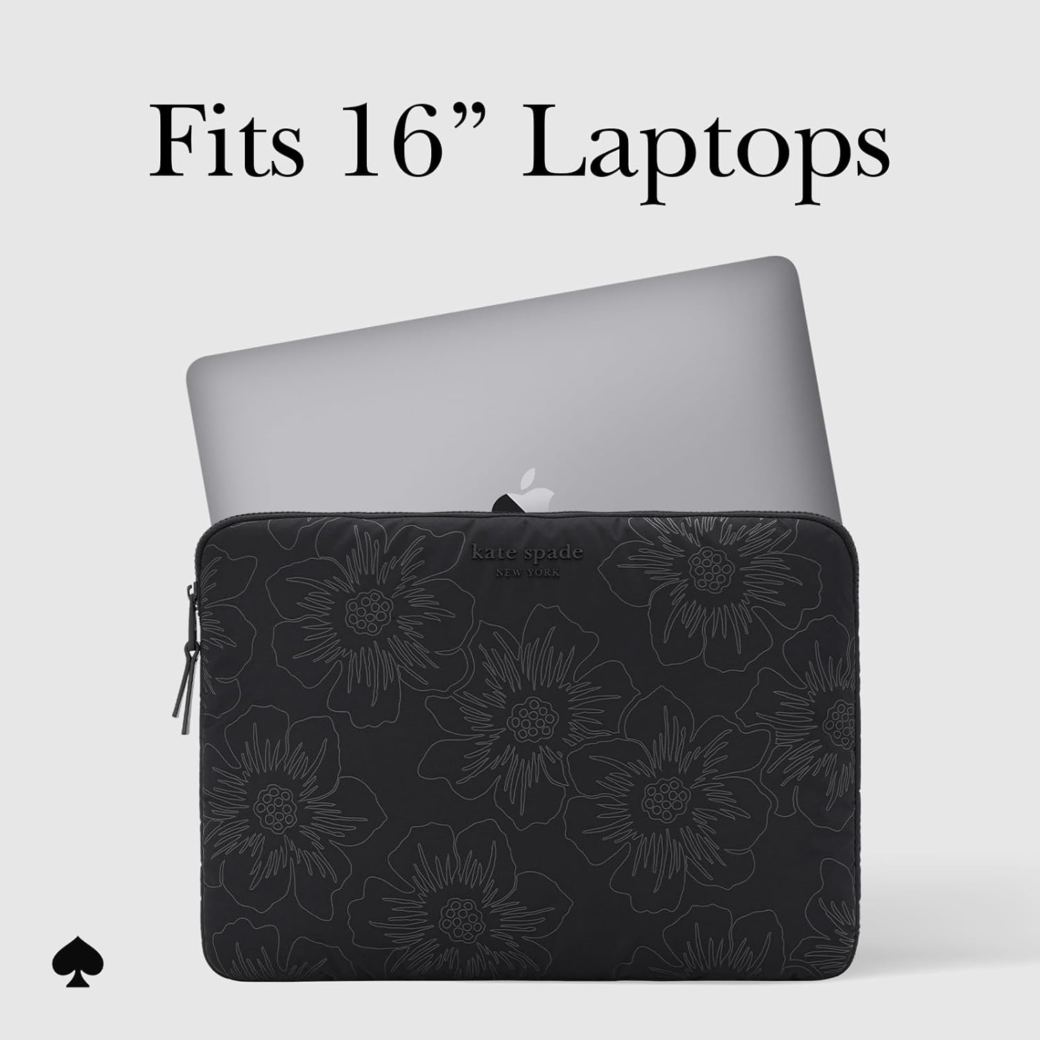 kate spade new york Puffer Laptop Sleeve 16 Inch – Reverse Hollyhock Black – Compatible with All MacBook M Series Devices