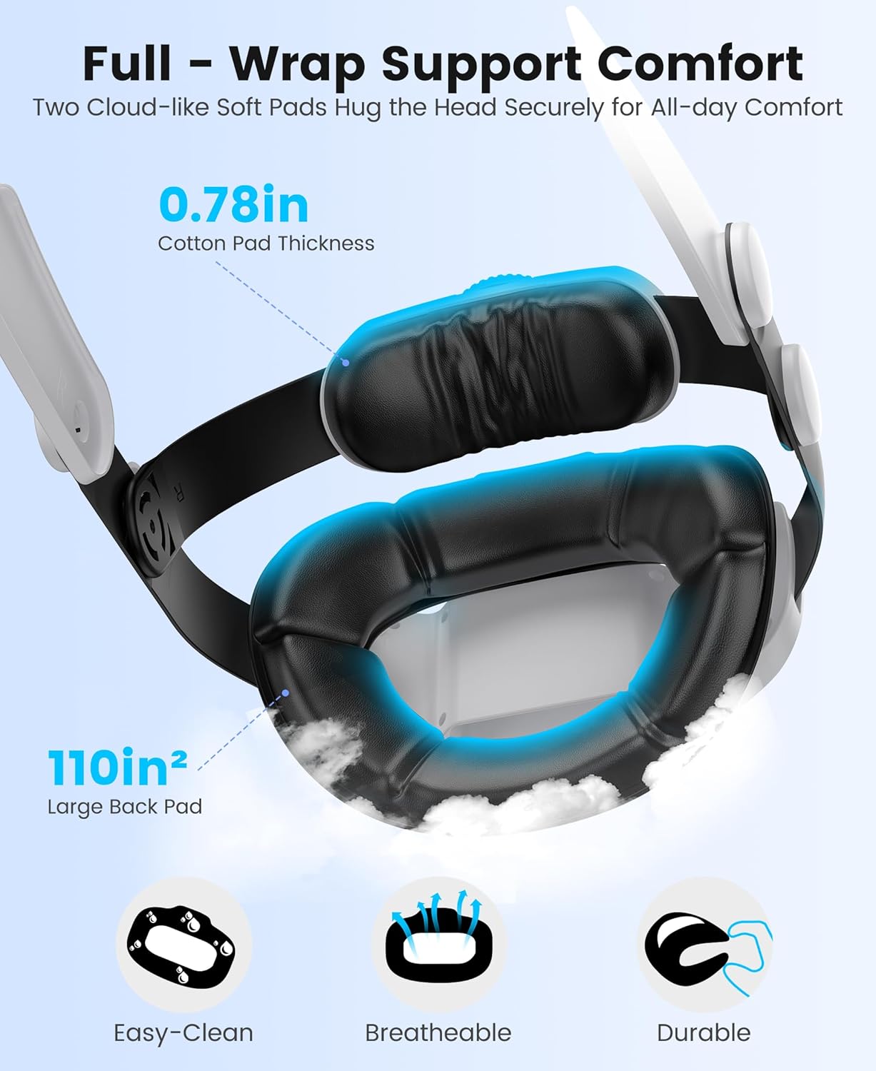 【All-Day Comfort – Dual Cotton Pads + 110in² Rear Cushion】Pain-free hours of VR from kawaye comfort elite strap! Dual thick cotton pads prevent red marks/soreness; 110in² rear cushion boosts stability for intense moves (Beat Saber/Supernatural). Must-have vr accessories for Quest 3S/3/2. for sony psp games