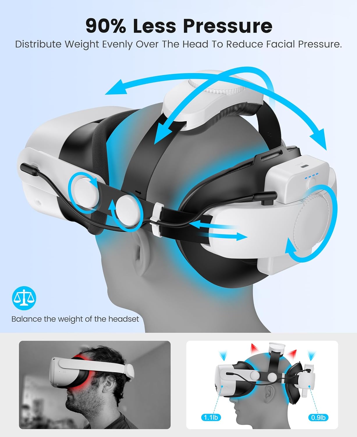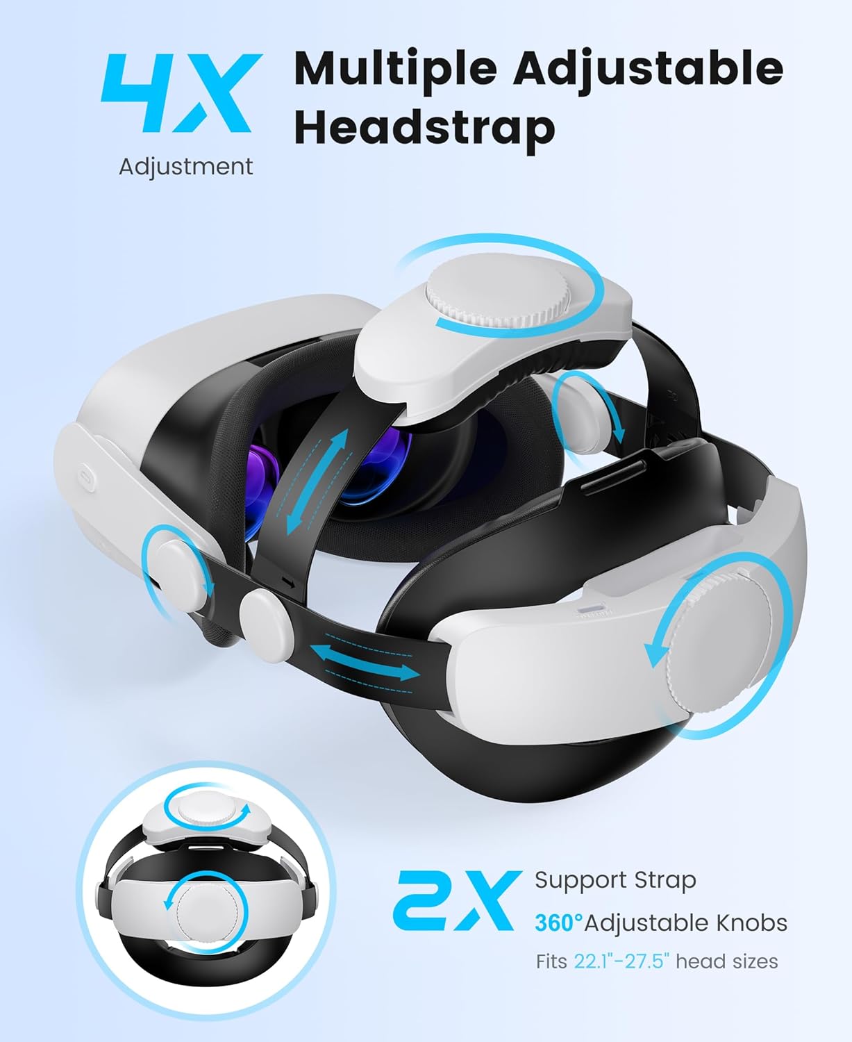 【Universal Fit & Full Kit】Kawaye head strap Works with Meta Quest 3S/Quest 3/Oculus Quest 2 vr headset.Enjoy the same adjustable comfort across all. Includes: 1 Strap | 2 Batteries | 1 Dock | 2 Cables | 2 Fastener Kits | 1 Cloth | 24/7 Support.