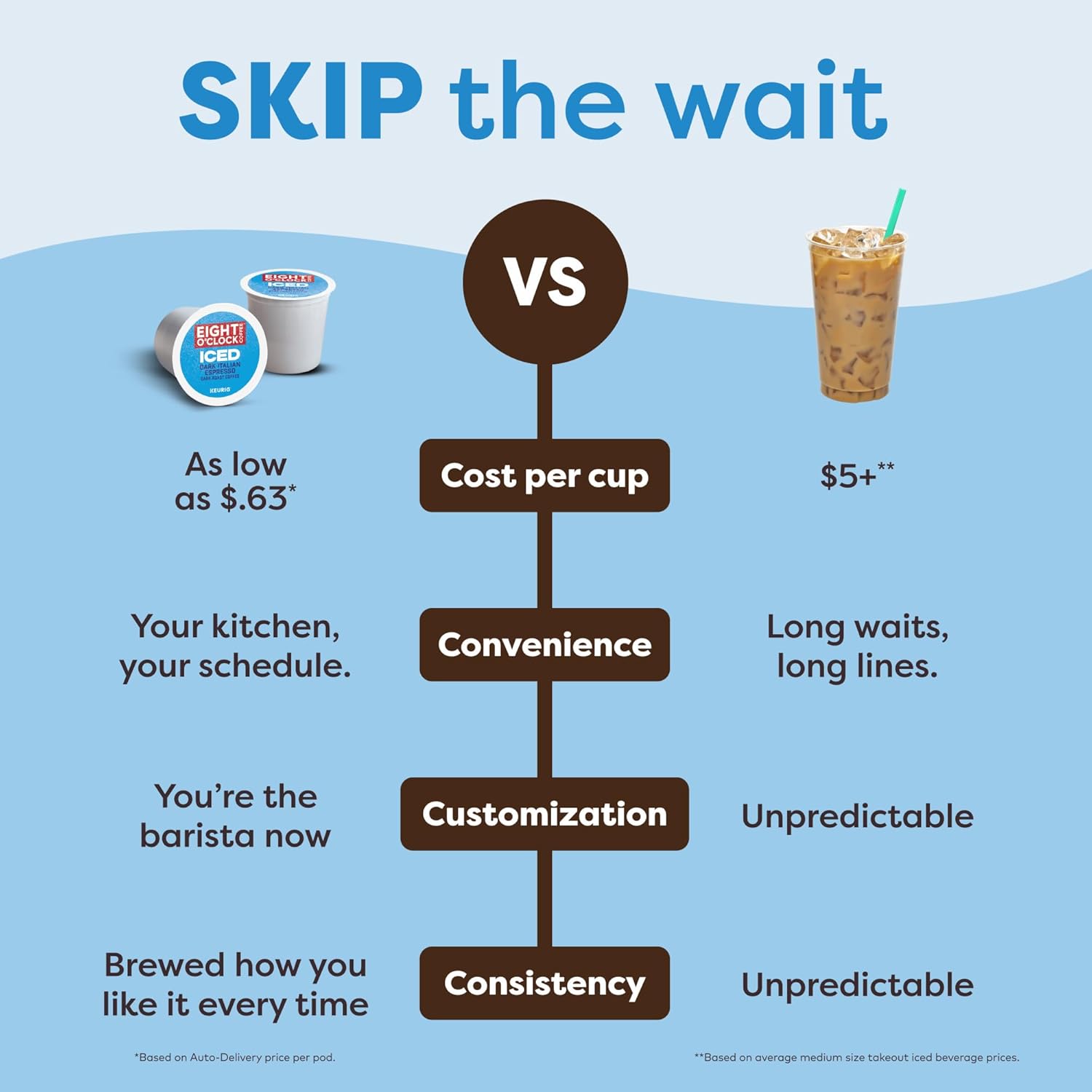 FAST & FRESH-BREWED: Delicious iced coffee and hot coffee made in minutes.