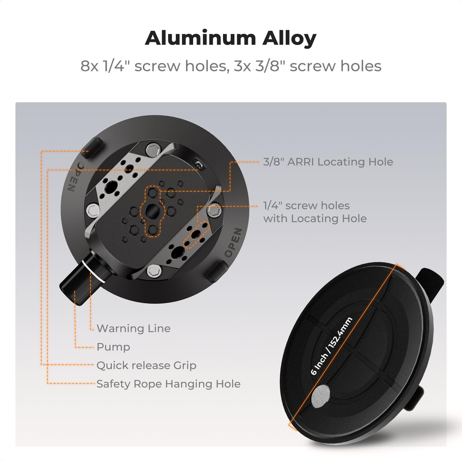 [Superior Suction Power] – K&F Concept Powerful Suction Cup Equipped with 6-inch (152mm) rubber large suction cups, it can be firmly adsorbed on smooth, flat, non-porous surfaces, such as car glass, hood, body sides, tiles, wooden table tops, etc., providing stable support for shooting and dramatically improving shooting flexibility. Recommended load-bearing equipment in motion: 3kg, suction cup horizontal suction force up to 60kg, vertical suction force 40kg.