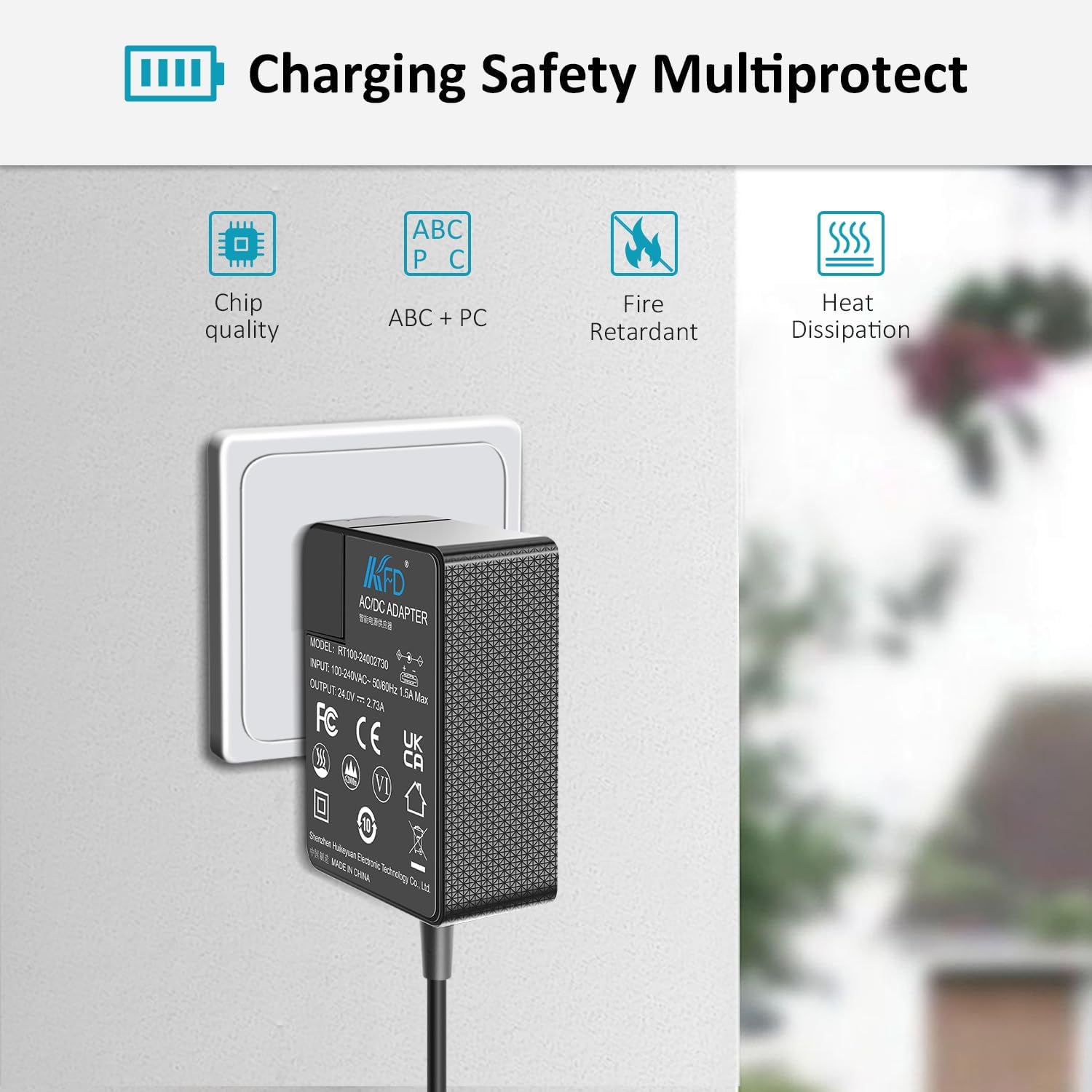 KFD products are UL/ CE / FCC / RoHS certified, Warranty: 30 Days Free Exchange /36 Months Warranty; Input:100-240V 50-60Hz, Output:24V AC Adapter for Ultimea Soundbar Power Cord Charger , Power Adapter Power Cord has OVP, OCP, SCP Protection (OVP: Over Voltage output Protection. OCP: Over Current output Protection. SCP: Short Circuit output Protection).