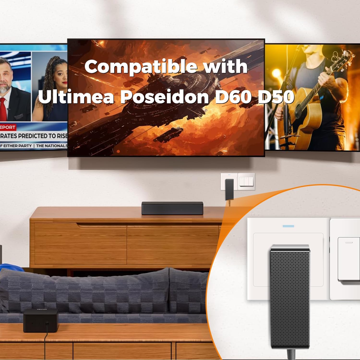 Ultimea Poseidon D60 D50 Model U2520 U2500 5.1 Channel Virtual Surround Soundbar Dolby Atmos Home Theater Sound Bar 24VDC Power Supply Cord Battery Charger
