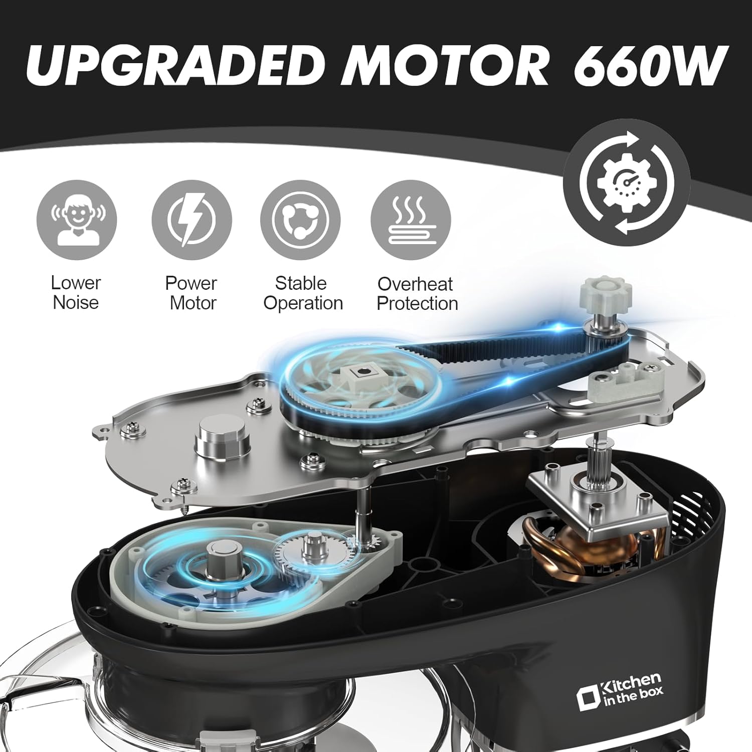 660W Powerful Motor: This mixer is equipped with a 660W high-performance pure copper motor, upgraded motor has higher mixing efficiency and fully knead and mix various ingredients and overheating protection device makes it safer to use