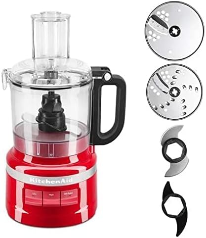 KitchenAid 7 Cup Food Processor Plus 3 speed Knead Chop Shred Slice Puree Empire Red (RENEWED)