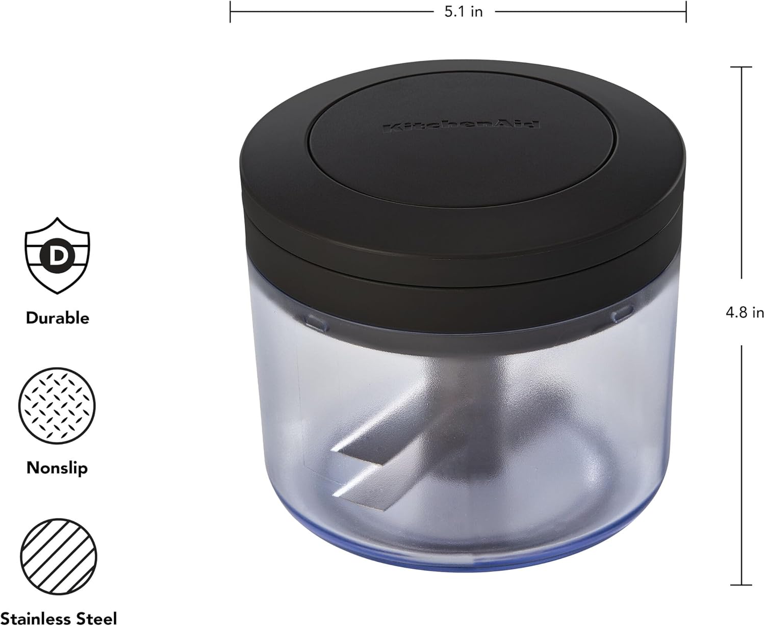 Effortlessly chop fruits, vegetables, or nuts for salads, salsas, dips, and dressings with the KitchenAid Manual Food Chopper. Simply pull the cord to spin the blades for perfectly chopped ingredients in seconds. The razor-sharp stainless steel blades easily slice through food for quick prep time, while the nonslip base keeps the chopper stable on the countertop while in use. The locking lid features a detachable base for covering and storing ingredients. The container, blades, and detachable lid base are dishwasher safe; the pull cord lid is hand wash only. The compact, lightweight design of the chopper allows for convenient storage.