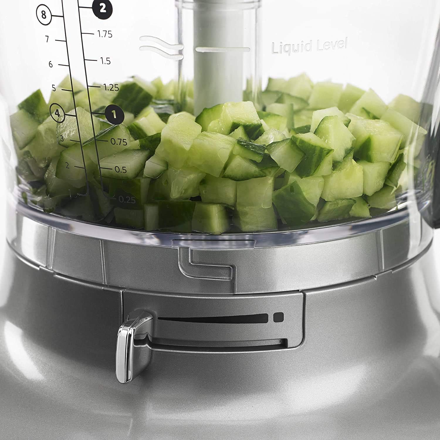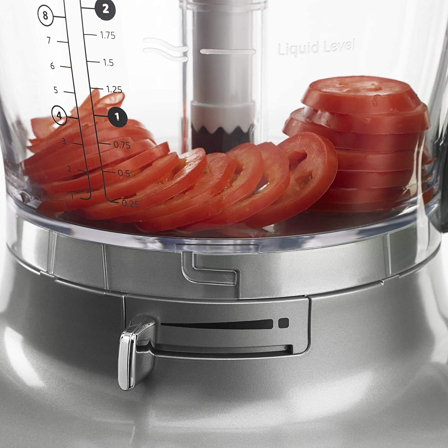 Model KFP1466 includes 14-Cup Work Bowl, 4-Cup Work Bowl, Lid with Feed Tube, Lid without Feed Tube, Adjustable Slicing Disc, Reversible Shredding Disc, Multipurpose Blade, Multipurpose Blade for 4-Cup Work Bowl, Dough Blade, Dicing Kit, Clean Out Tool, Storage Case. KitchenAid 14-Cup Food Processor with Exact Slice System easily slices soft to hard foods with the optimized speeds, from thick to thin also includes commercial-style dicing kit. The 2-in-1 Ultra Wide Mouth Feed Tube accommodates a variety of sizes of food. Voltage – 120V (RENEWED)