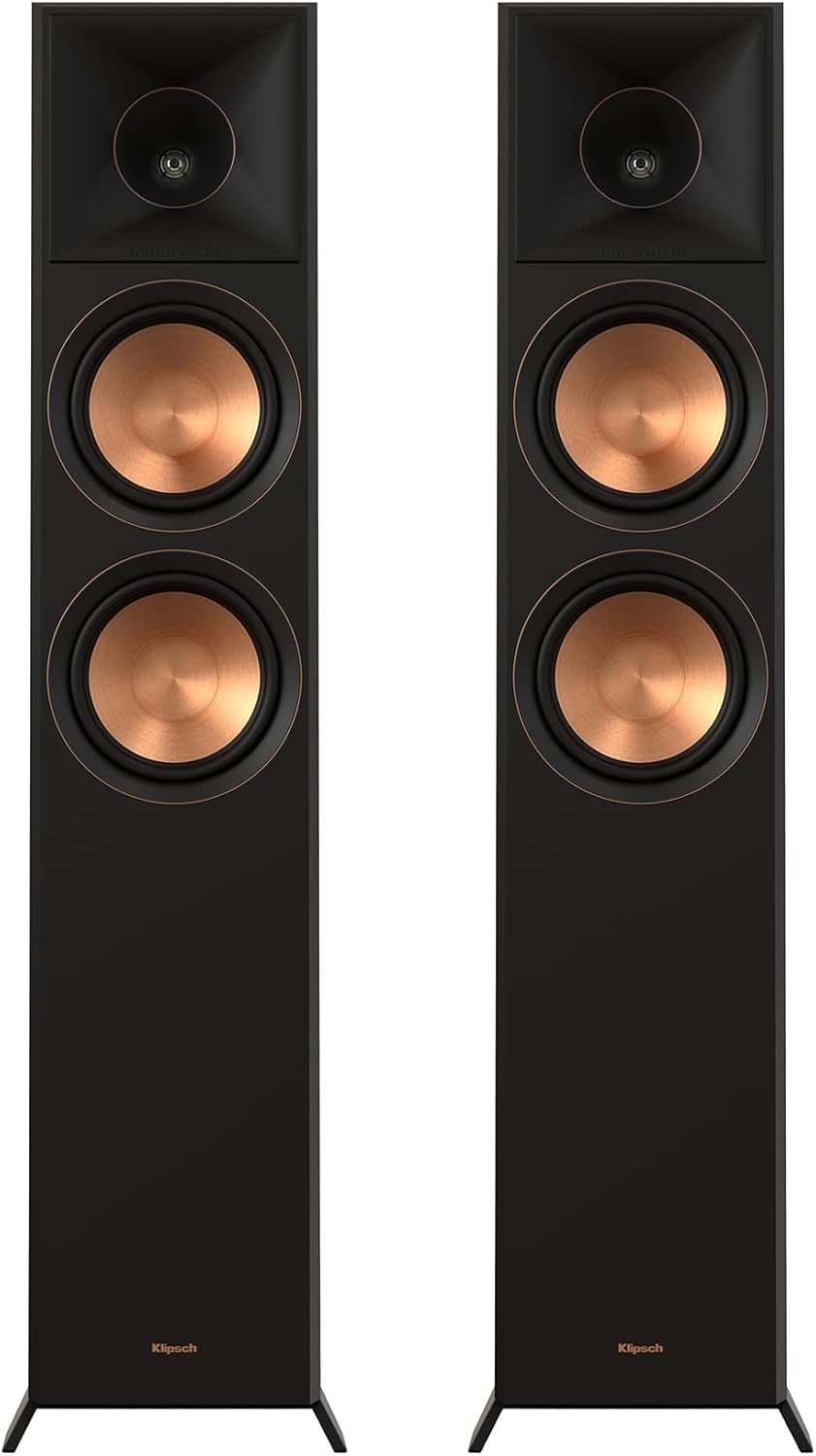 The Klipsch RP-6000F II floorstanding speaker delivers incredible cinematic sound by leveraging a larger Tractrix horn, updated copper-spun 6.5” Cerametallic woofers, a vented tweeter design, and Tractrix ports. The RP-6000F II floorstanding speaker offers easy Dolby Atmos integration via hidden connections on the back of it. The second-generation of the acclaimed Klipsch Reference Premiere speaker series features updated technology to deliver the cleanest, most dynamic sound possible, while aesthetic updates make these speakers true showstoppers. Paired with the Onkyo TX-NR6100, experience movie theater quality sound from your home.