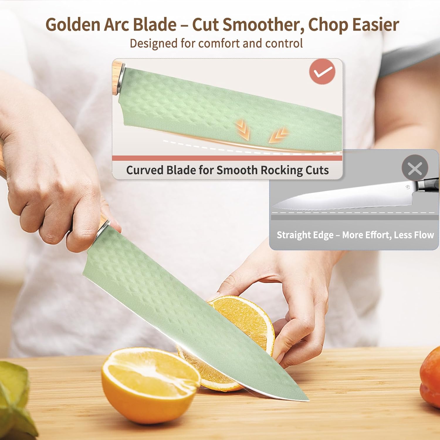 Culinary Knife Set with Natural Green Tone – This khaki green culinary knife set brings a calm, earthy vibe to your kitchen. A refreshing choice that fits farmhouse, modern, or minimalist spaces.