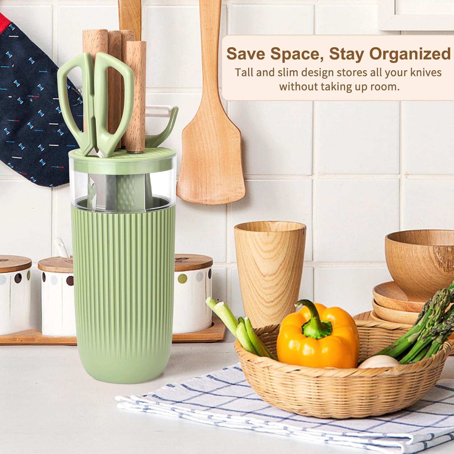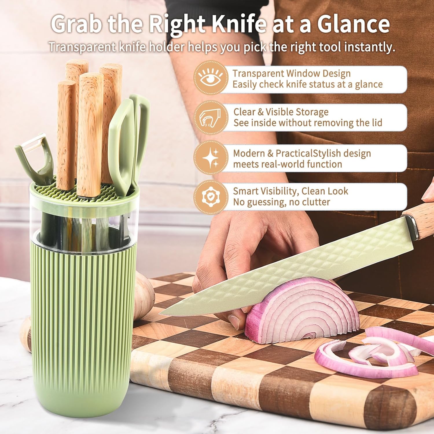 Knife Block Set with Clear Viewing Window – The modern knife block set features a transparent top window, making each knife visible and easy to identify. Prevents mistakes when reaching for tools, while keeping everything neatly stored.