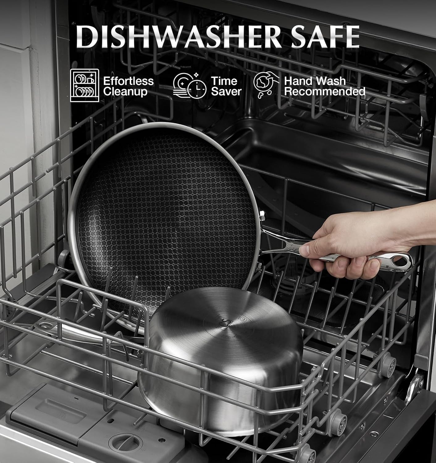 Easy to Clean & Maintain – The premium three-layer stainless steel construction ensures durability and effortless cleaning. The smooth, hybrid honeycomb interior resists food buildup, making maintenance a breeze. Built to last, this stainless steel saucepan retains its performance and shine, even after frequent use.