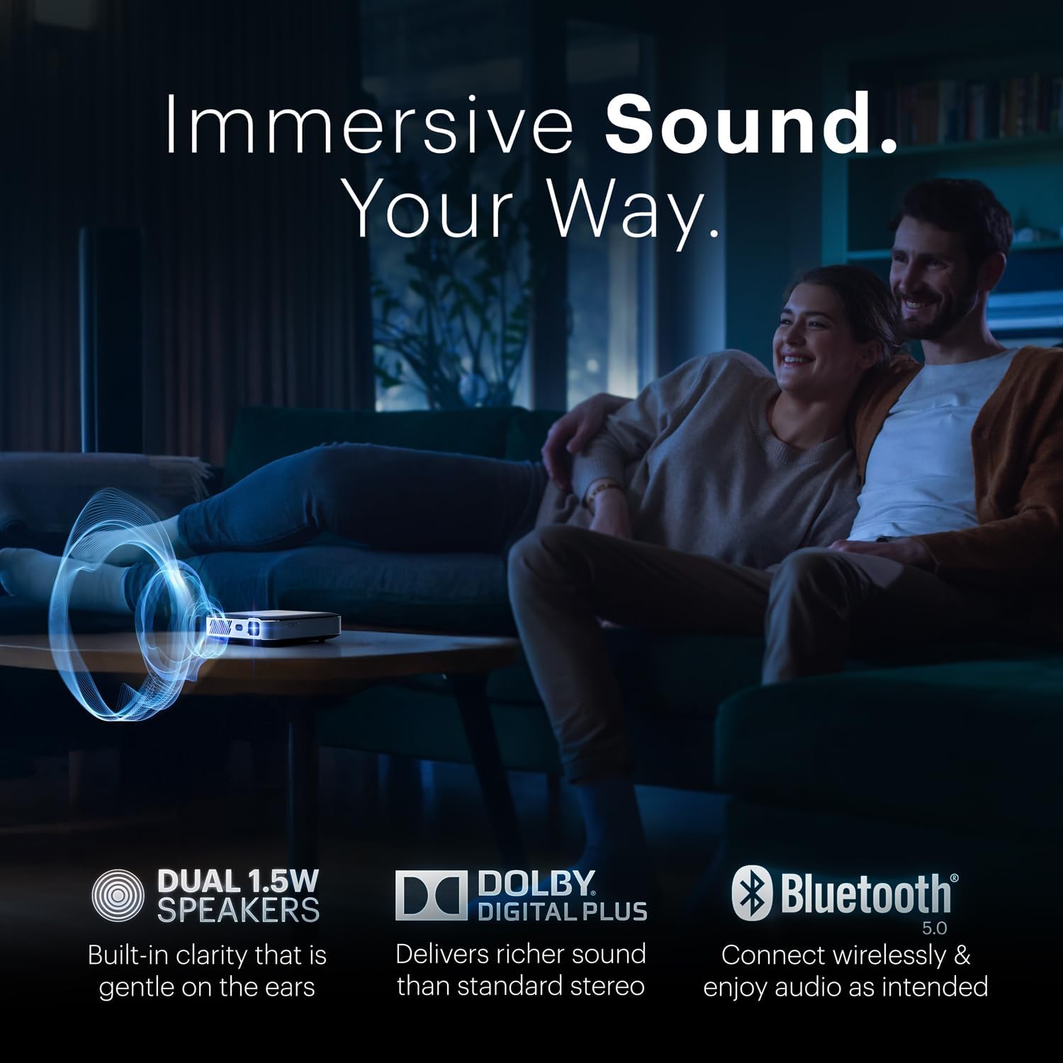 Compact Home Projector: This compact home projector is designed for convenience. Its automatic vertical keystone adjustment ensures a perfectly balanced picture, making it an ideal wireless projector for any small space or home theater setup.