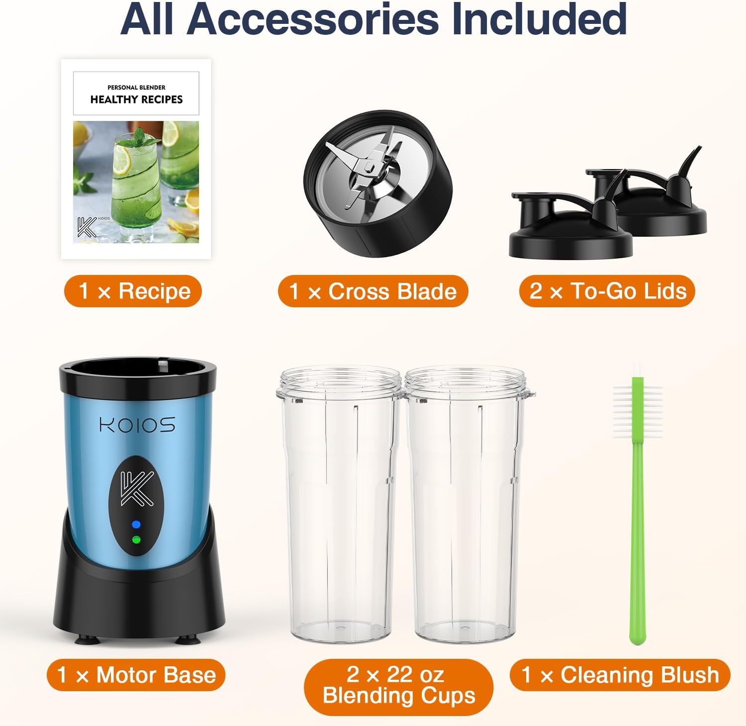 [Powerful Blending Performance] The 900-watt peak power motor and 4-stainless steel blades achieve high-speed blending at up to 22,000 RPM, easily crushing ice and frozen fruit, and say goodbye to incomplete mixing. It’s ideal personal blender for shakes and smoothies