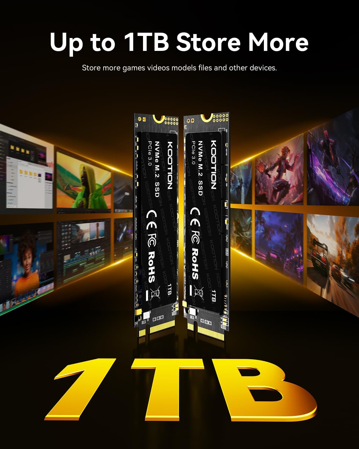 System Upgrade: The 1TB M.2 SSD uses NVMe interface and PCIe 3.0 technology to significantly improve computer performance and durability, while effectively reducing latency in operating systems, games, and software