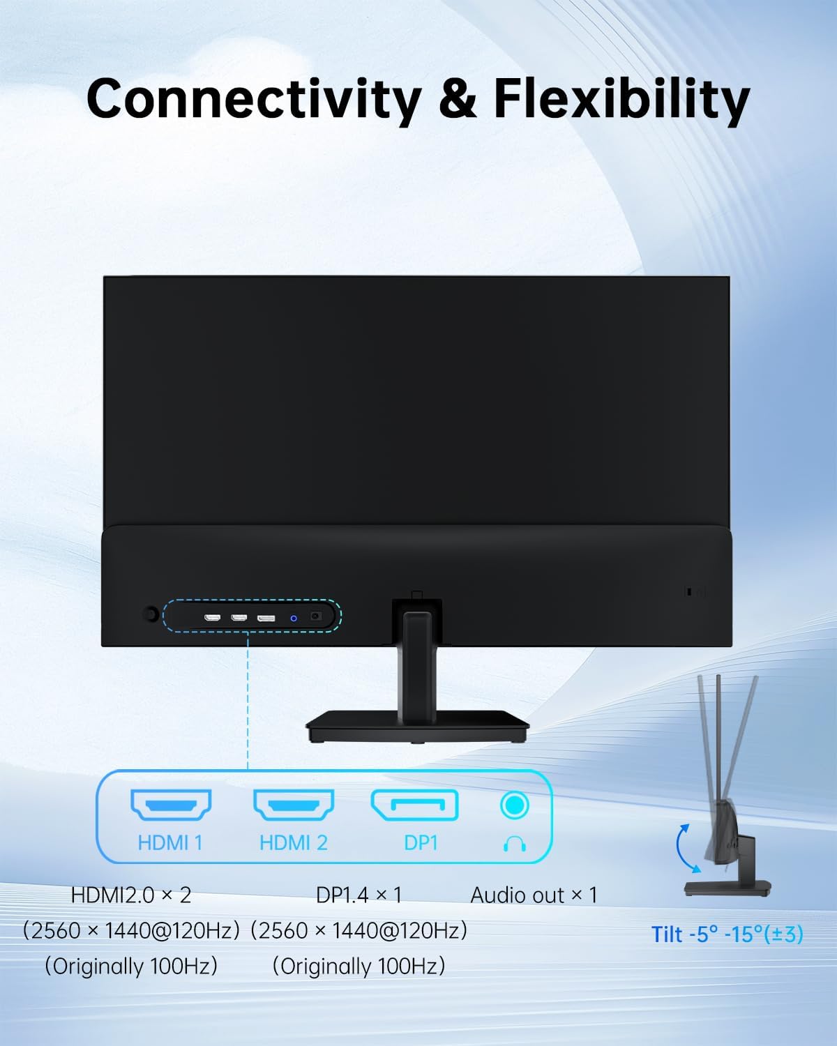 1440P 120 Hz Monitor: With up to 120Hz refresh rate and adaptive Freesync or G-sync technology, you could fully enjoy your gaming or work without any annoying tearing and stuttering. Get wonderful experience from this desktop monitor.