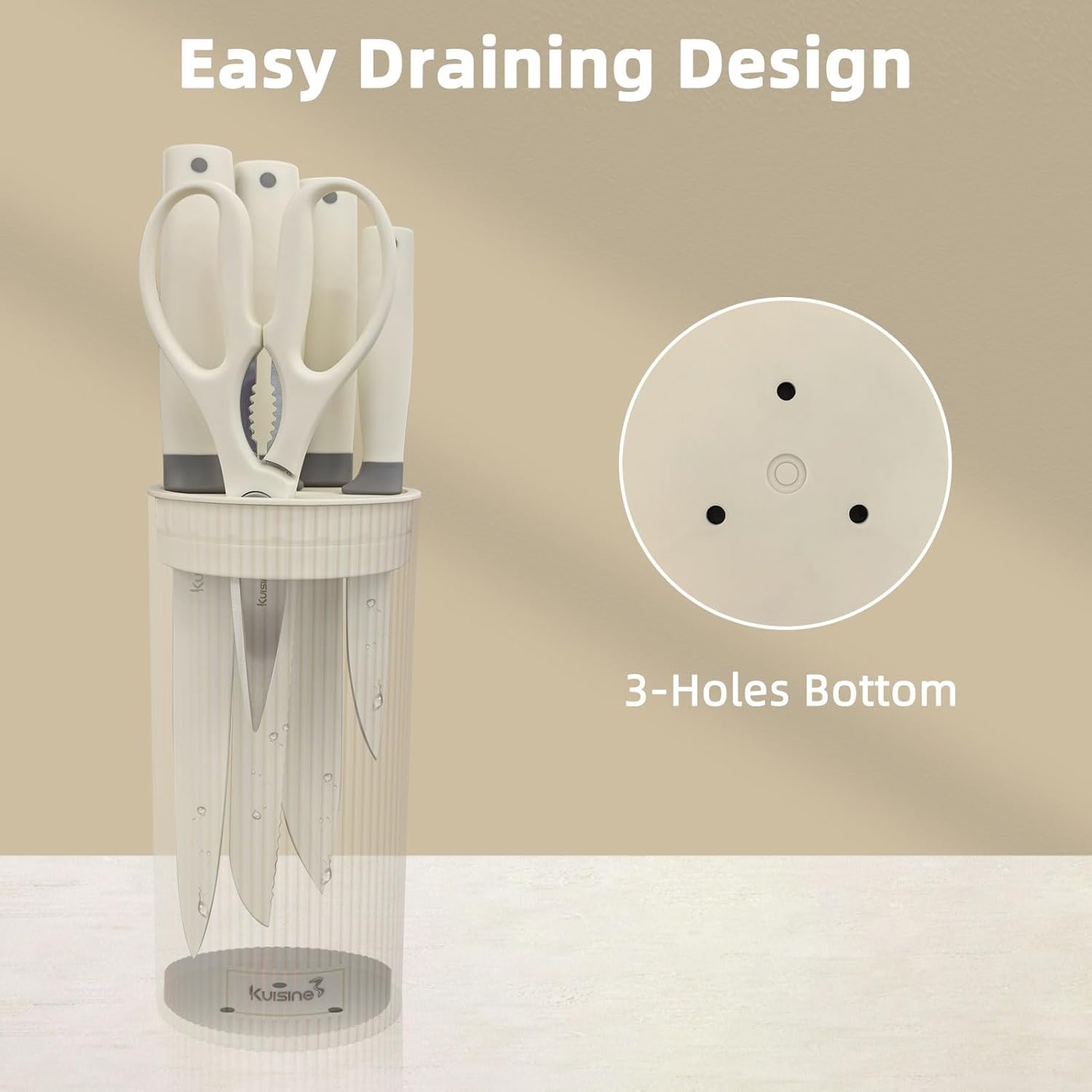 Kuisine Premium kitchen Knife Set with block,High Carbon Stainless Steel Forged,Ergonomic Non-slip Handle Knife Block Set(6PCS,Ivory)