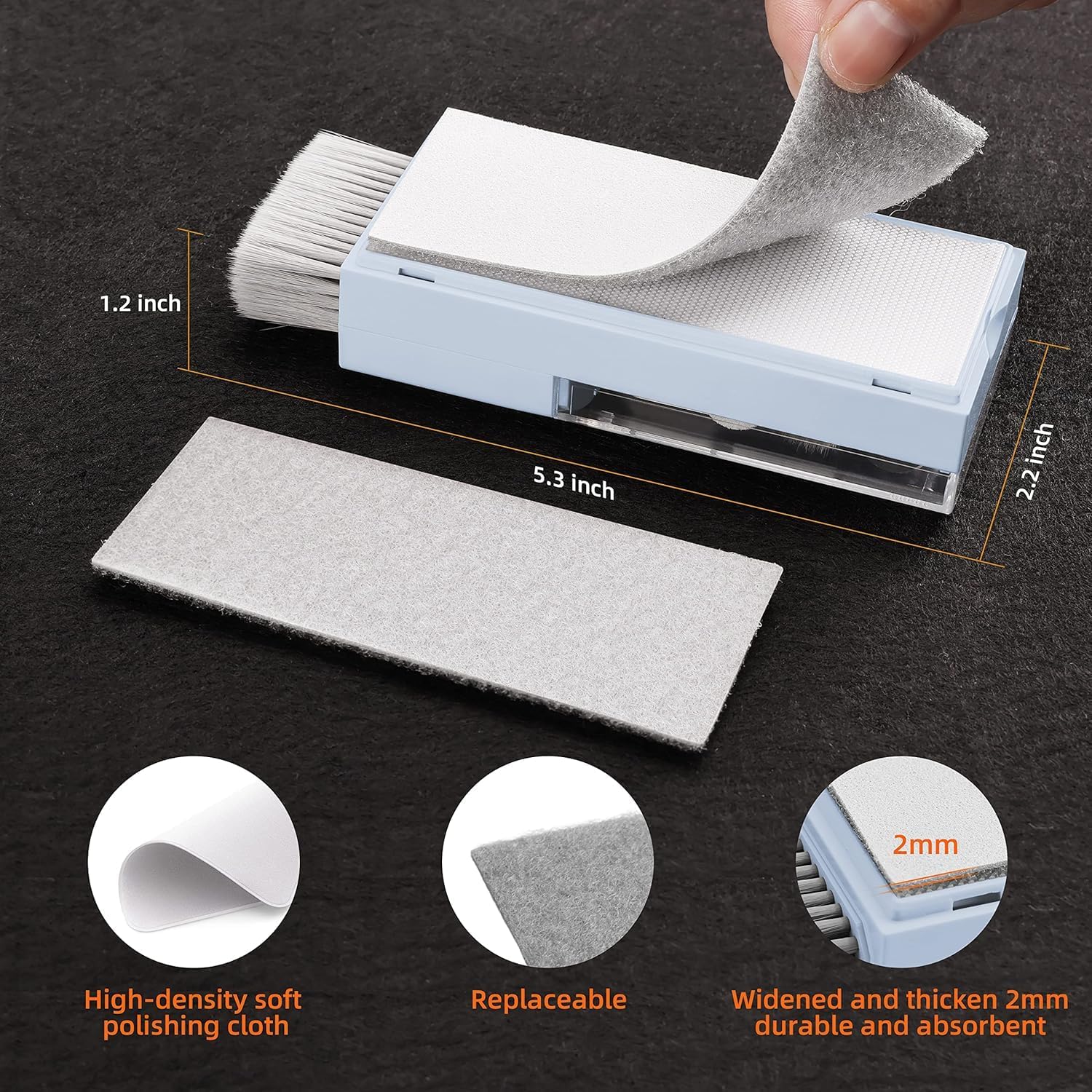 【Effectively Cleaning All Your Devices】 Soft brush and soft plastic lens cleaning pen of the keyboard cleaner is especially designed for camera screen, lens and other delicate surfaces. 5 more cleaning cloth of it supplied for replacing. The flocking sponge is an excellent tool for cleaning headphones charging cases, while the metal pin tip and high-density brush are ideal for cleaning the sound outlet holes on earbuds. Keep your smartphone, camera lens, laptop, headphones and other electronic accessories clean and new