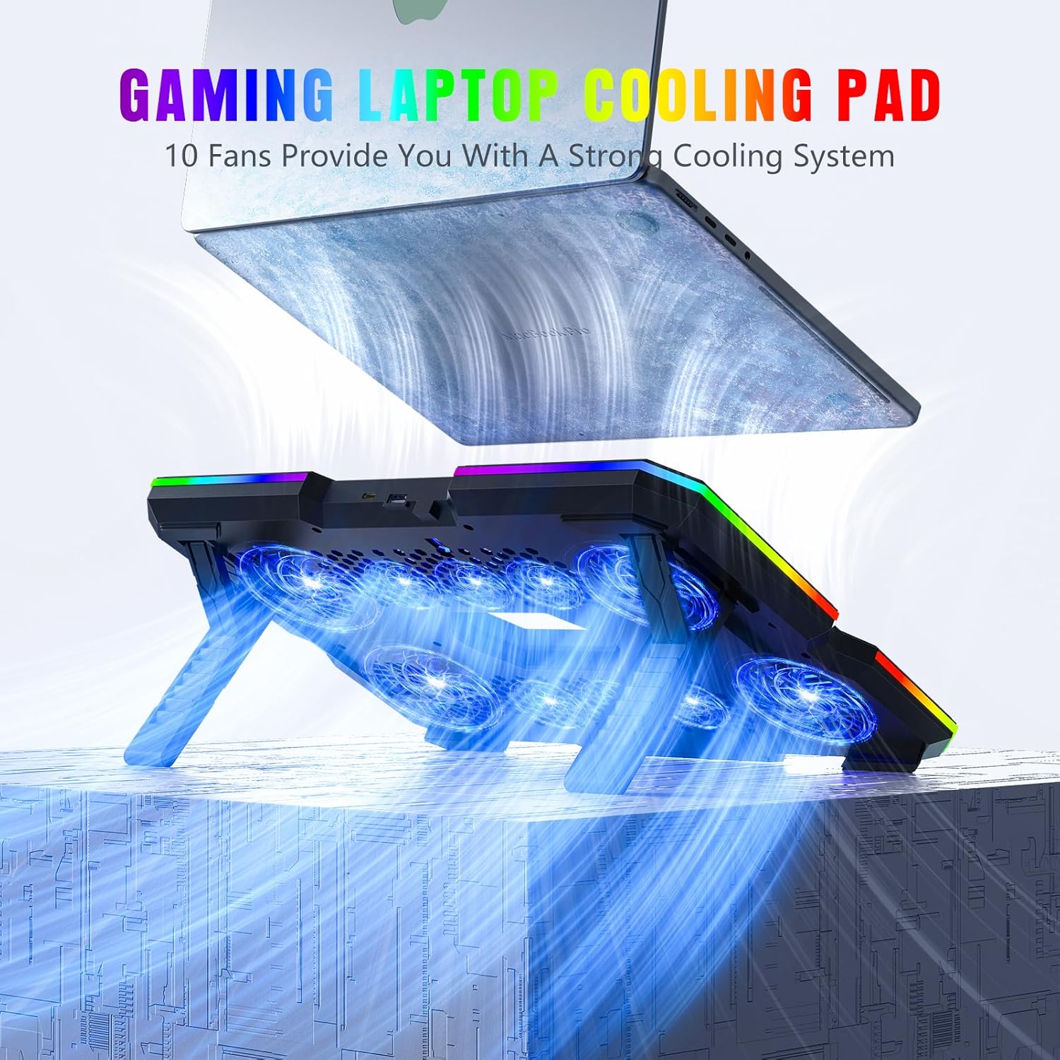 【10 Dual High-Speed Cooling Fans & Phone Stand】Trullypine laptop cooling pad can effectively cool down your laptop with 4 large cooling fans and 6 small cooling fans. The fan switch and the wind intensity of the fans can be controlled by buttons of 5 speed settings. It is an ideal companion for long gaming sessions or video editing, Effectively prevent overheating and lag. It also comes with a phone stand with 4 adjustable angles.