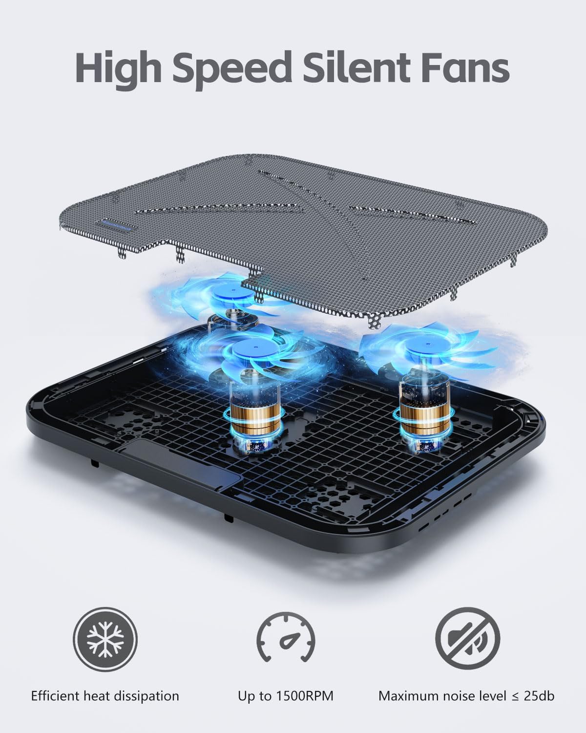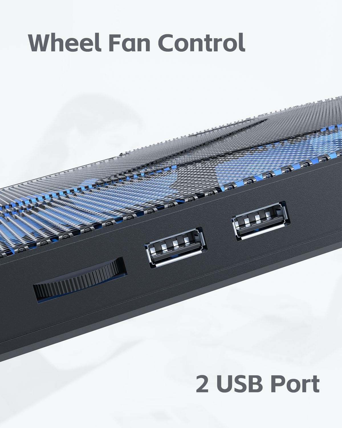【3 Super Cooling Fans】Aisunkutech laptop cooling pad can effectively cool your laptop, this laptop cooler has three silent large fans, The maximum fan noise does not exceed 25db, And the fan speed can be adjusted by the wheel switch on the top.
