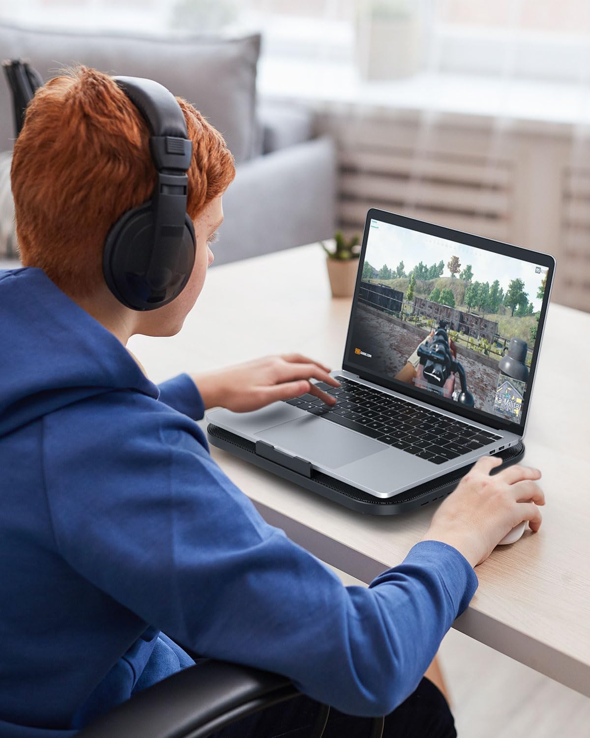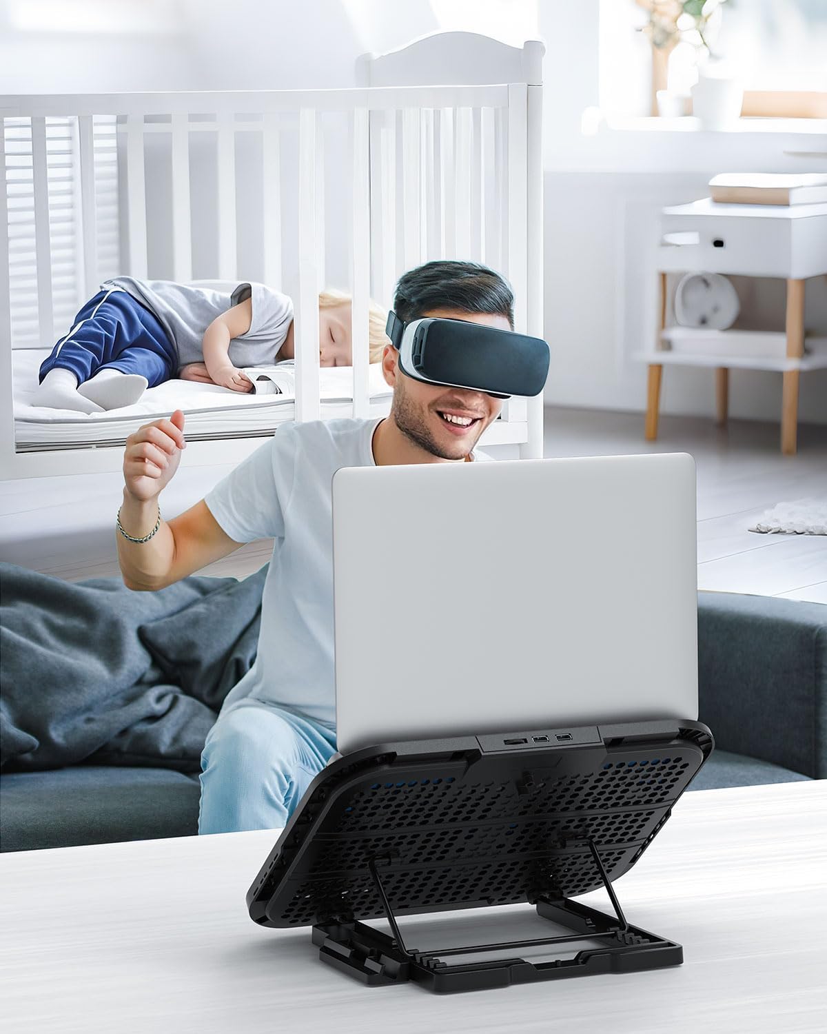 【Height Adjustable Design】The bottom of this laptop cooler is equipped with an ergonomic metal stand bar, which adopts an innovative lifting design and supports 5 levels of free height adjustment. Help you keeping away from shoulder and neck fatigue.