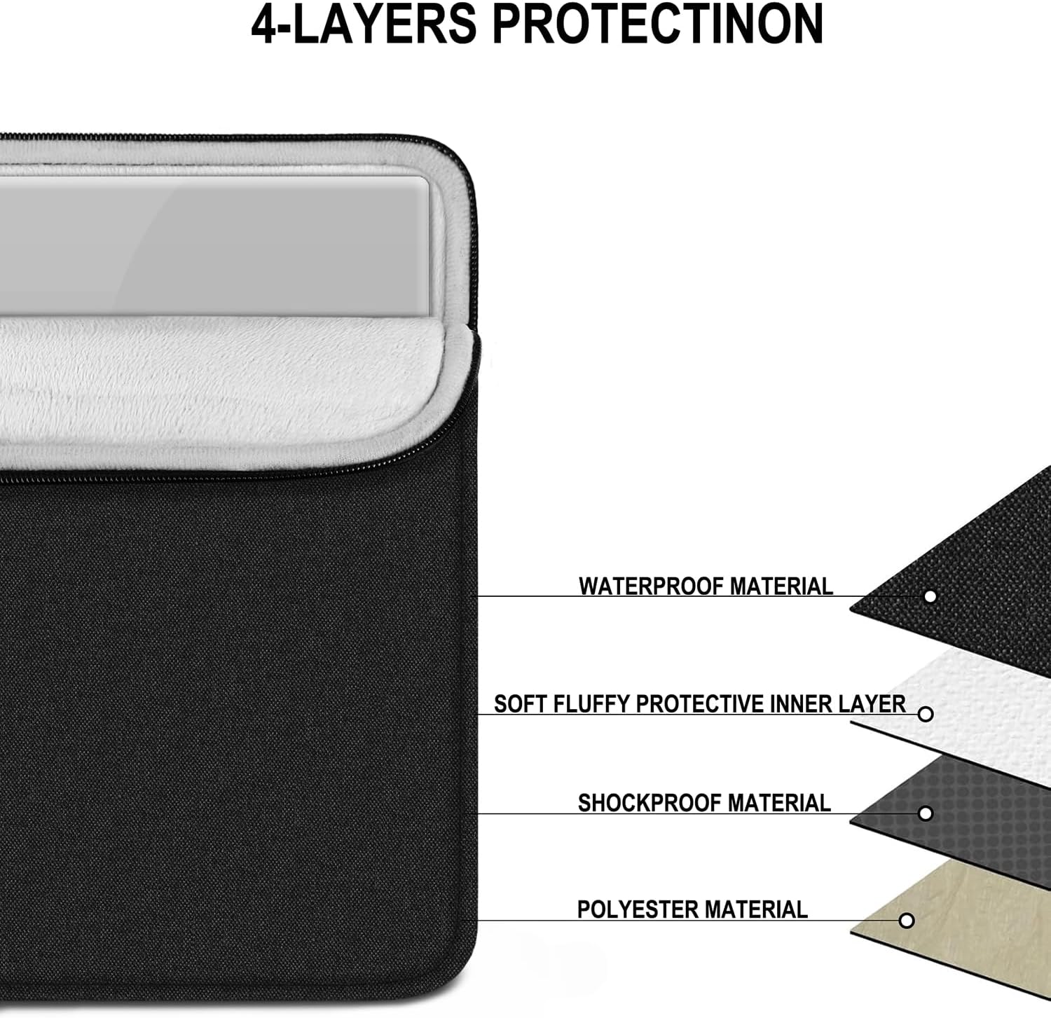 【Shockproof Soft Lining】This laptop sleeve interior has soft plush lining with a silky touch, Extra soft, The anti-static, Featuring three layers’ protection with waterproof layer, shockproof layer and fluffy fabric inner layer, It can protect your laptop from dust, dirt, scratch, bump, rainwater and splashing liquid.