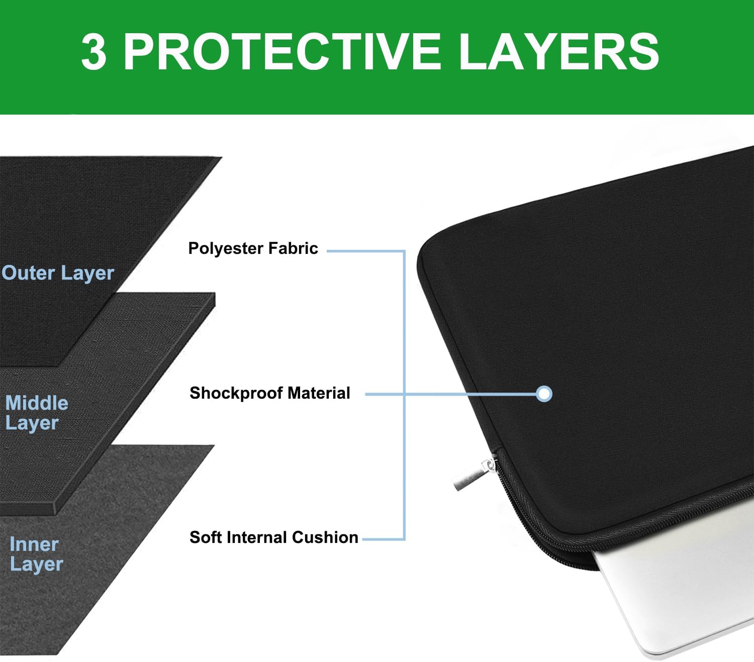 【Soft And Protective】Premium thickened water-resistant neoprene material offers a ultra slim lightweight design and superior protection to protect laptop/notebook from dust, bumps, scratches, scuffs and spills.
