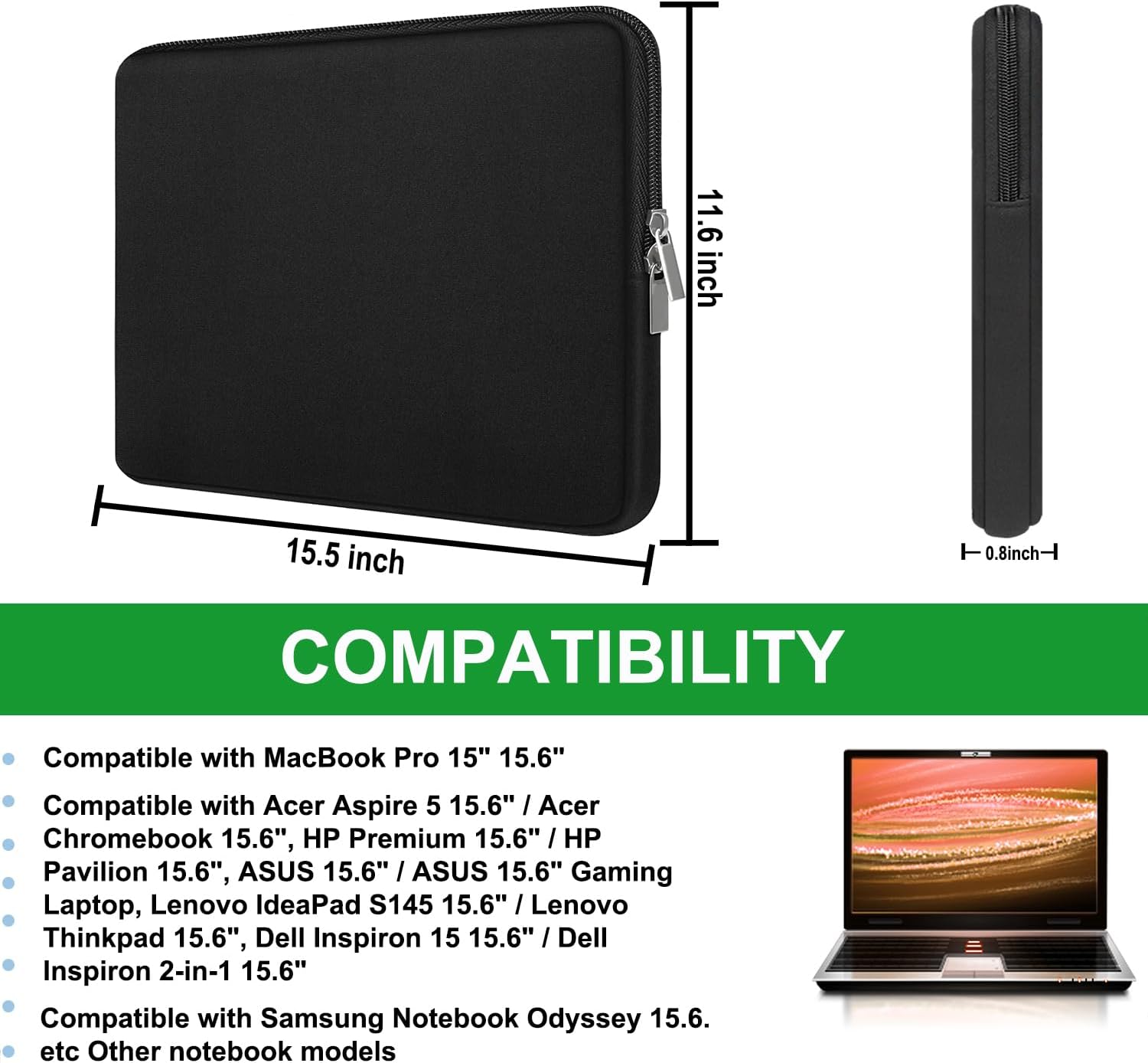 【Compatibility】Our laptop sleeve is Compatible with most popular up to 15.6 inch notebooks, Compatible with MacBook Pro 15″ 15.6″, Compatible with Acer Aspire 5 15.6″ / Acer Chromebook 15.6″, HP Premium 15.6″ / HP Pavilion 15.6″, ASUS 15.6″” / ASUS 15.6″ Gaming Laptop, Lenovo IdeaPad S145 15.6″ / Lenovo Thinkpad 15.6″, Dell Inspiron 15 15.6″ / Dell Inspiron 2-in-1 15.6″, Compatible with Samsung Notebook Odyssey 15.6. etc Other notebook models.