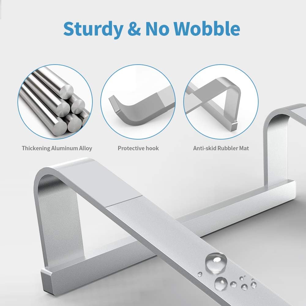 【Lightweight and Sturdy】: The computer stand is totally made of thickened Aluminum alloy(0.12-0.4inches thickness), so the stand is sturdier and only 0.5lb lightweight, and Raised front edges hold the laptop in place while in a tilted position and rubberized non-slip pads support your laptop in place to prevent unwanted scratches to your laptop and desk.