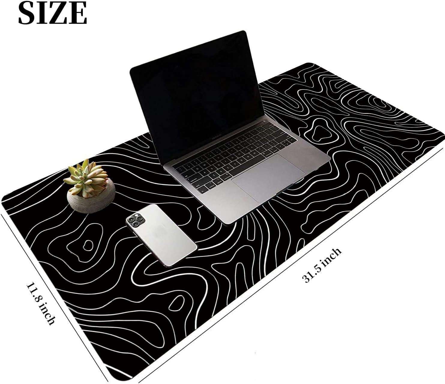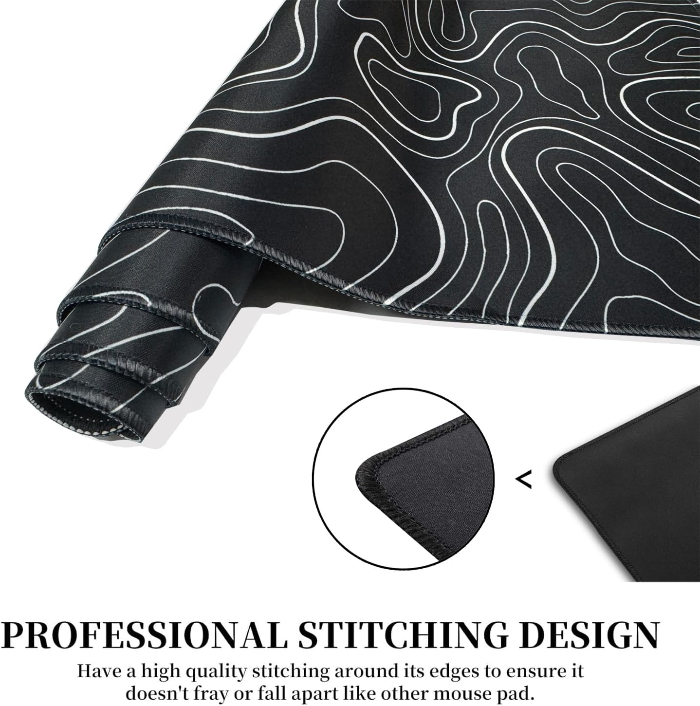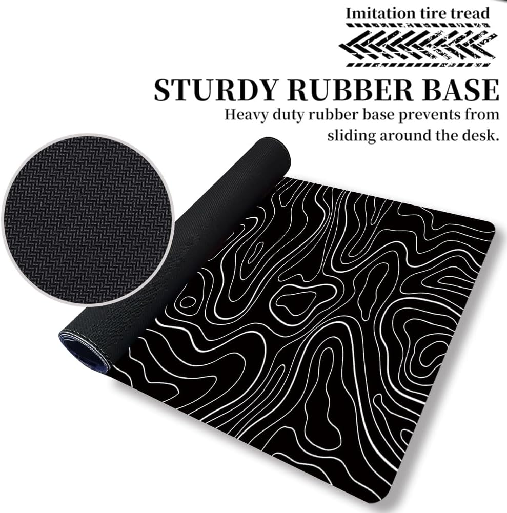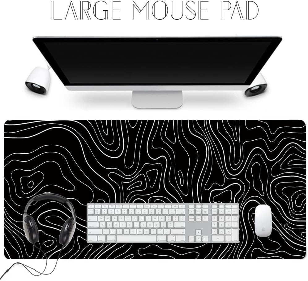 Large Gaming TOPO Keyboard Mouse Pad Black Topographic Mouse Pad with Anti-Slip Rubber Base, Extended XXL Long Gaming Mousepad Big Mouse Pads for Desk,31.5 X 11.8 Inch