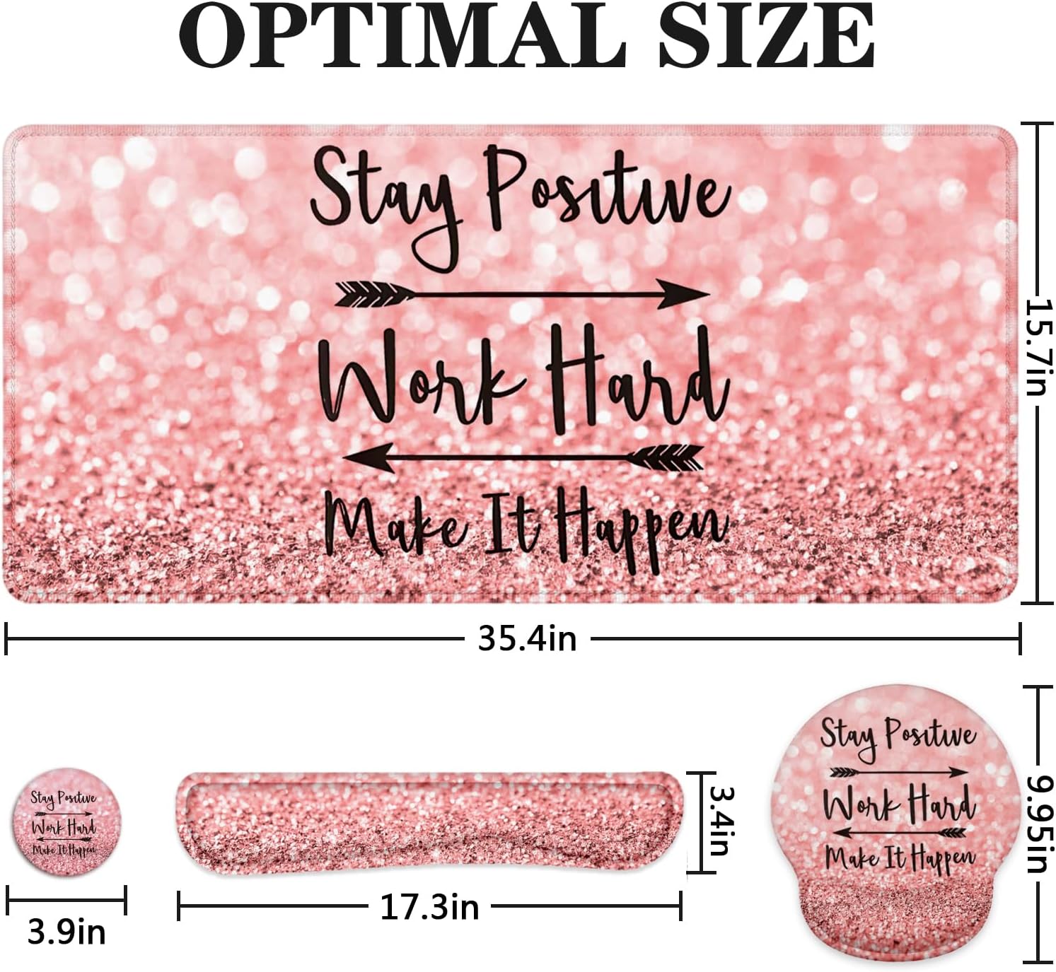 【Large Mouse Pad & Wrist Rest Set】Our large mouse pad and wrist rest set includes XXL gaming mouse pad (35.4”x15.7”), keyboard wrist rest(16.9”x3.5”), mousepad wrist rest(9.9”x8.7”x0.8”), cup coaster(3.9×3.9”). This extended desk mat for keyboard and mouse is large enough to fit your mouse, gaming keyboard, and other desk items.