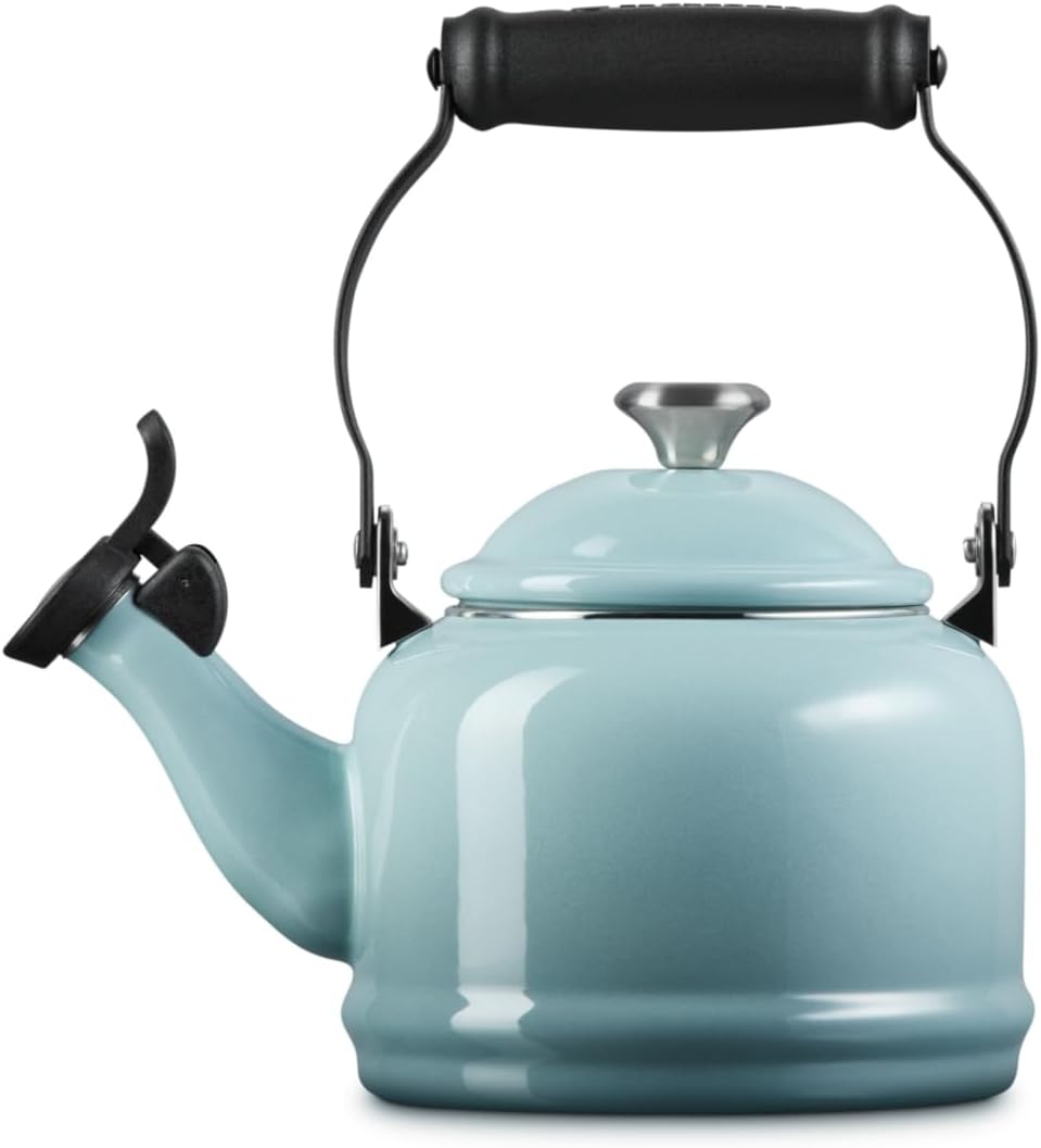 The Le Creuset enamel on steel Demi Kettle is crafted from fast-heating premium carbon steel glazed in our stylish palette of colors and unique designs to complement any kitchen. Useful for preparing French press coffee, oatmeal and much more in addition to tea, durable carbon steel heats water rapidly, and a fixed single-tone whistle alerts when the water has reached a rolling boil. Chip-resistant, non-reactive, resistant to stains, and easy to clean, Le Creuset kettles make excellent gifts and are a beautiful way to add a touch of color to the kitchen.