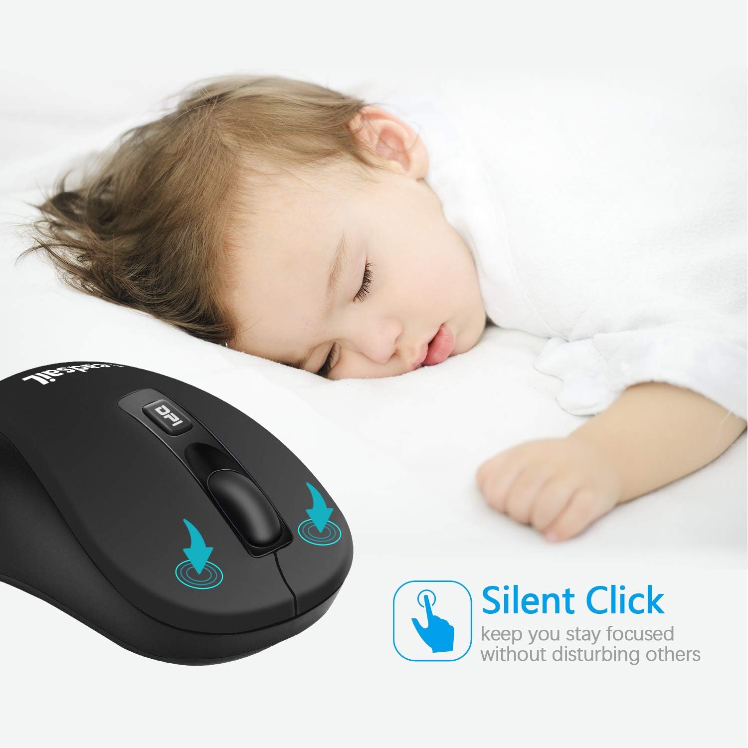【3 ADJUSTABLE DPI】 800,1200,1600 DPI, easily change the cursor sensitivity depending on your activity. Computer mouse comes with a Nano receiver (stored in the back of the wireless mouse with magnetic force). No need any driver, and you can plug and play the wireless mouse for laptop directly.