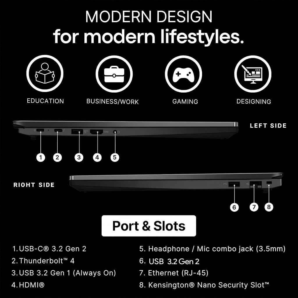 【Key Features】Equipped with Wi-Fi 6E, Bluetooth 5.3, Thunderbolt 4, USB-C 3.2 Gen 2, HDMI 2.1, Ethernet, and SD card reader. Features a 16″ WUXGA IPS display, full-size backlit keyboard with numeric keypad, and 1080p FHD camera with privacy shutter for smooth collaboration. Dolby Audio speakers, dual mics, Precision TouchPad, and fingerprint reader deliver clear sound, secure login, and effortless navigation. With sleek aluminum cover and MIL-STD-810H durability, it blends elegance and strength.